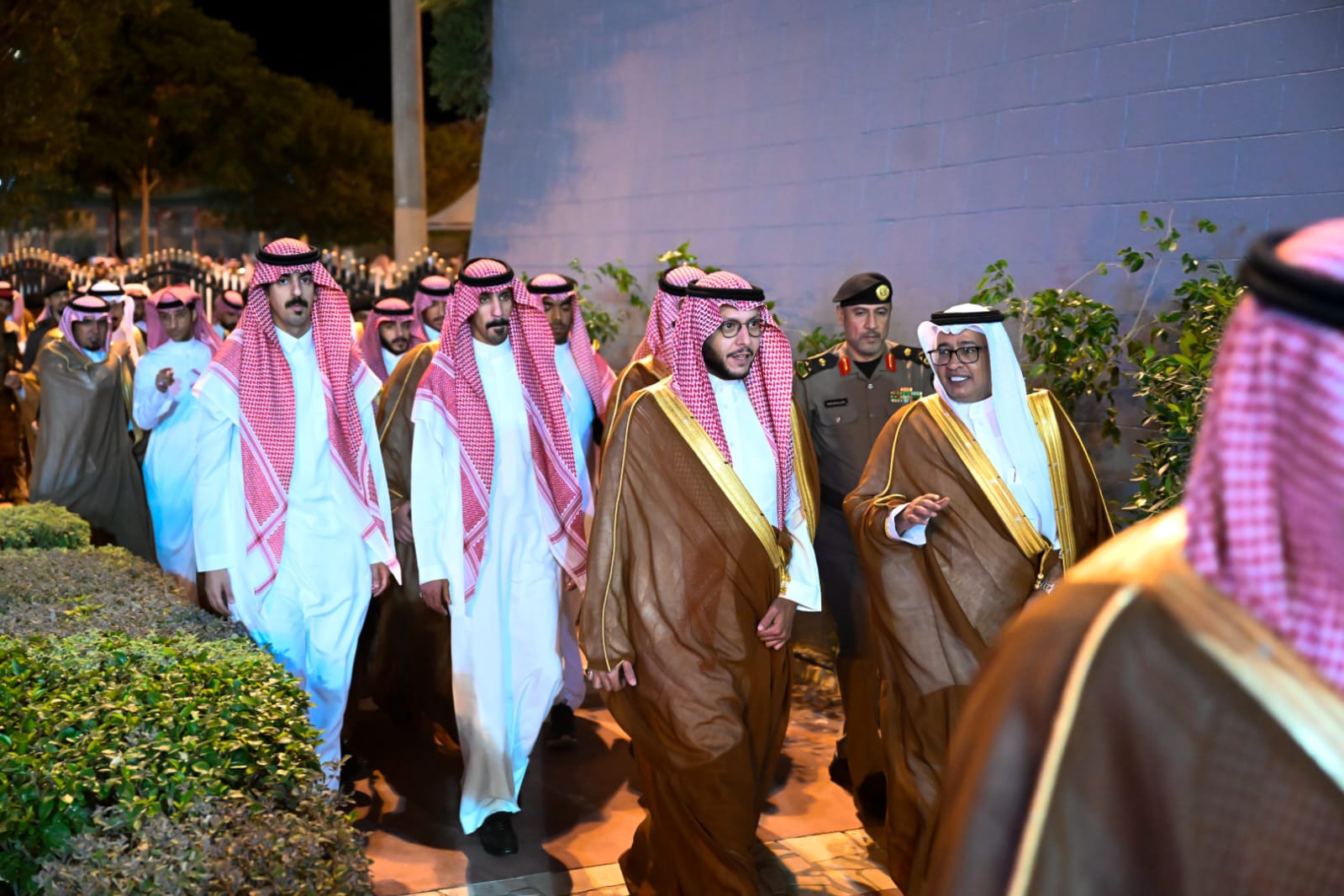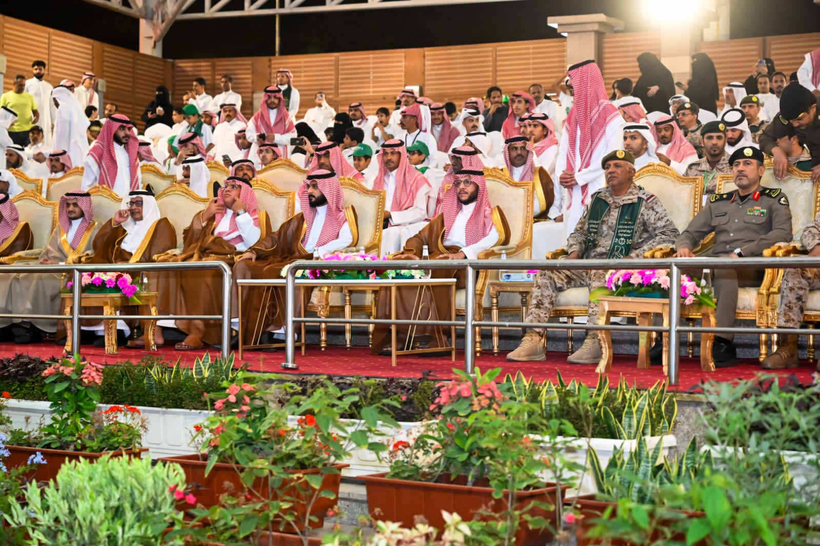 وفور وصول سمو محافظ الطائف لمقر الاحتفال كان في استقبالة أمين أمانة الطائف المهندس ناصر الرحيلي وقيادات القطاعات الحكومية المدنية والعسكرية حيث عزف السلام الملكي، ليبدأ الحفل بآيات من الذكر الحكيم، ثم ألقيت القصائد الوطنية بتلك المناسبة وتوالت الفلكلورات الشعبية والعروض المختلفة التي شاركهم سموه الفرحة .لتضي الألعاب النارية سماء الطائف