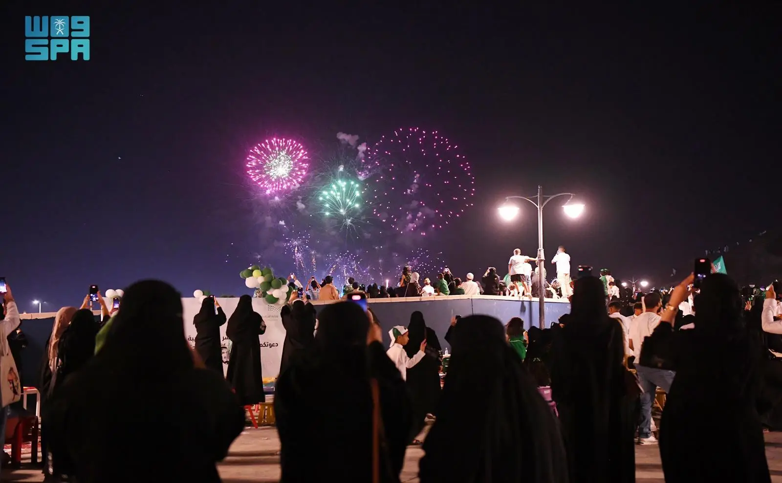 أضاءت الألعاب النارية مساء أمس سماء المدينة المنورة, ضمن فعاليات الاحتفاء باليوم الوطني الـ٩٣ للمملكة تحت شعار " نحلم ونحقق " بحديقة الملك فهد المركزية بالمدينة المنورة.