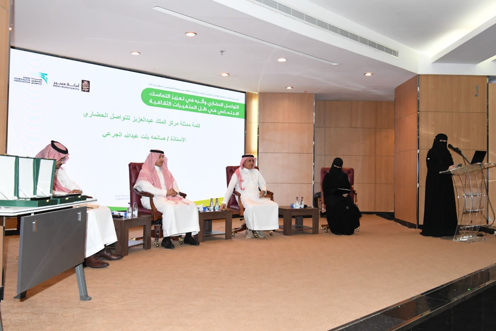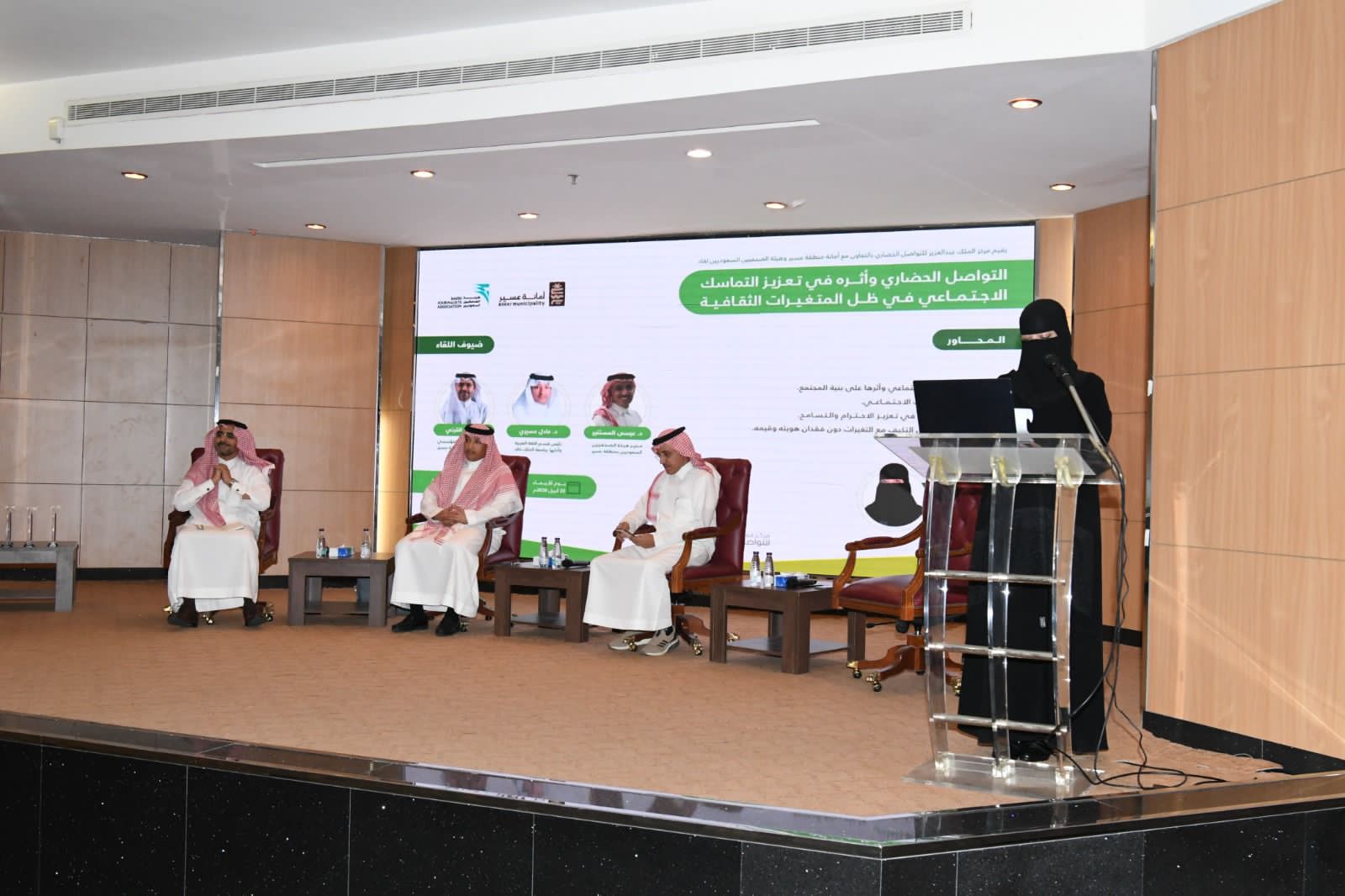 احتضن مسرح أمانة منطقة عسير، جلسة حوارية بعنوان” التواصل الحضاري وأثره في تعزيز التماسك الاجتماعي في ظل المتغيرات الثقافية “، والتي نظّمها فرع هيئة الصحفيين في المنطقة بالشراكة مع مركز الملك عبدالعزيز للتواصل الحضاري، بحضور نخبة من الأكاديميين والمثقفين والمهتمين في الشأن الثقافي.