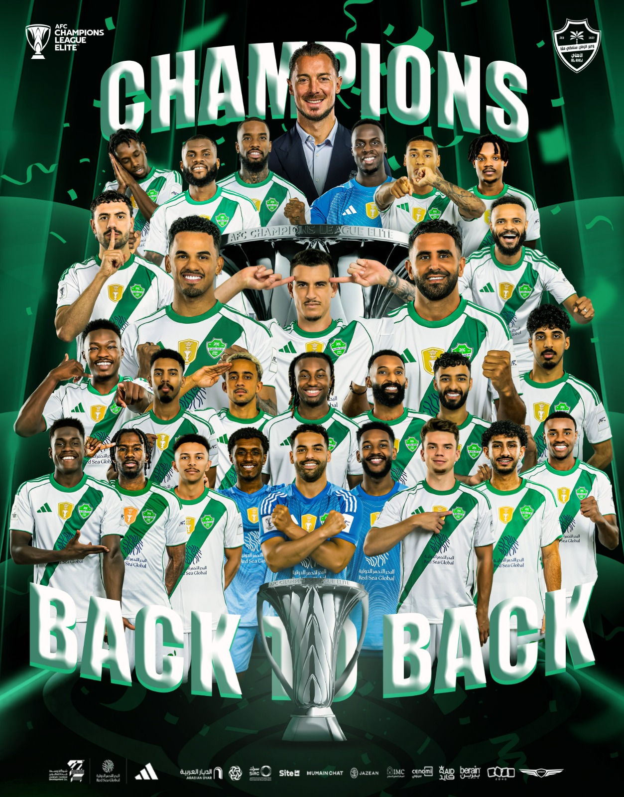وهذه هي المرة الثانية التي يحقق فيها الأهلي لقب البطولة حيث سبق وإن حققها العام الماضي وبالتالي يكون رابع فريق في تاريخ دوري أبطال آسيا يحقق اللقب مرتيين متتاليتين.