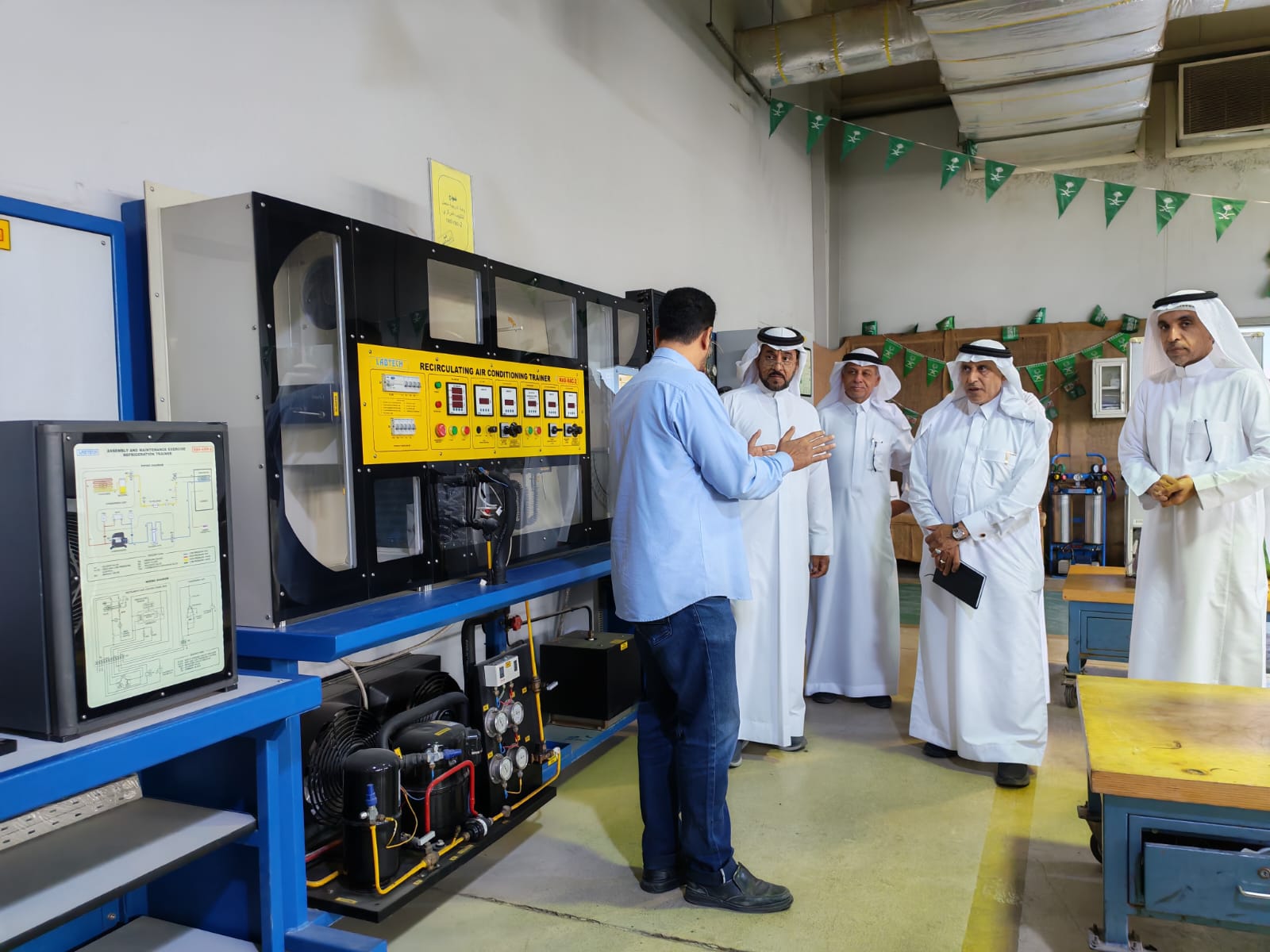 وتضمّنت الزيارة جولة على عدد من الأقسام التدريبية في المعهد، اطّلع خلالها الوفد على التجهيزات والبرامج التدريبية المقدمة، والتي تسهم في تأهيل الكوادر الوطنية وفق احتياجات سوق العمل.