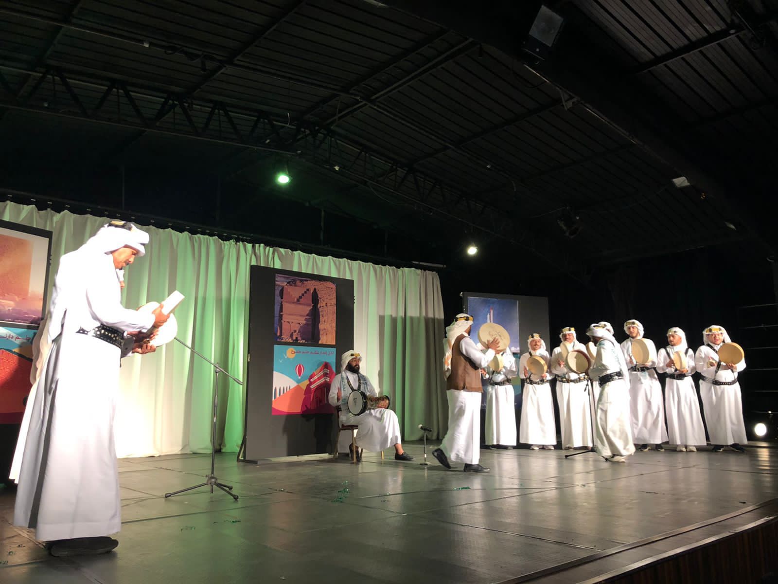 وقدمت فرقة بنات المملكة عدد من الفقرات الاستعراضية ، وصاحب الاحتفال معرض للفنون البصرية عبر به فناني وفنانات الطائف عن حبهم وانتمائهم للوطن ، وصاحب الاحتفال ورشة الخط العربي التفاعلية .
