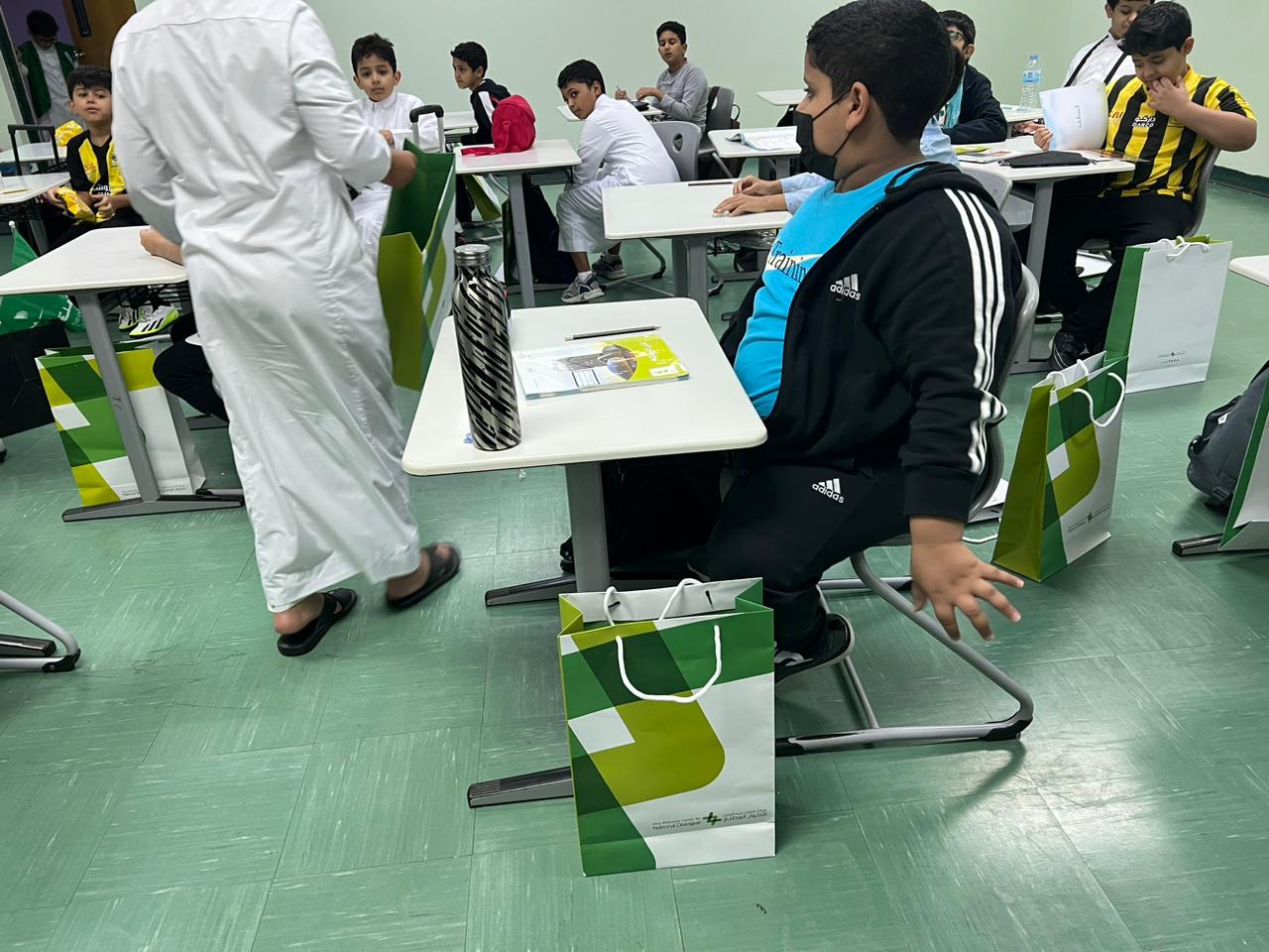 كما تم توزيع هدايا تذكارية باسم المركز من قبل فريق من المتطوعين والمتطوعات في فعاليات الاحتفاء باليوم الوطني.