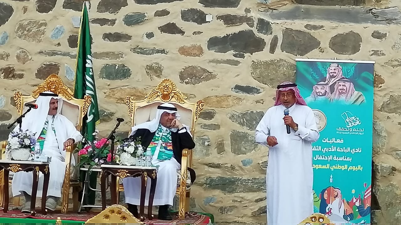 مآثر المؤسس و ولاء أهالي المنطقة في احتفالية أدبي الباحة بيوم الوطن الـ93 بقصر ابن رقوش.