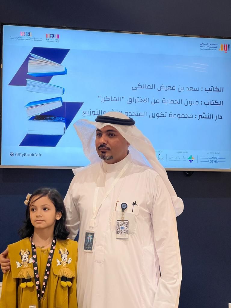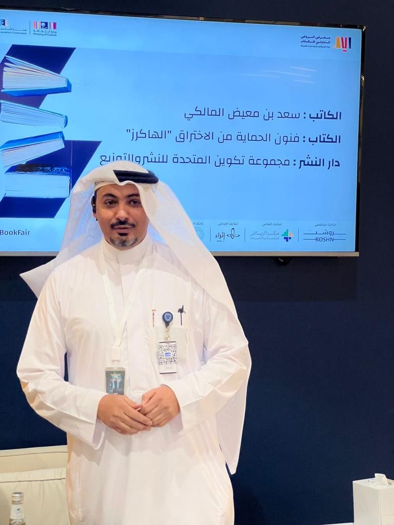 وقع المؤلف سعد المالكي، يوم أمس الخميس كتابه الجديد فنون الحماية من الاختراق "الهاكرز" على منصات التوقيع في معرض الرياض الدولي للكتاب 2023.