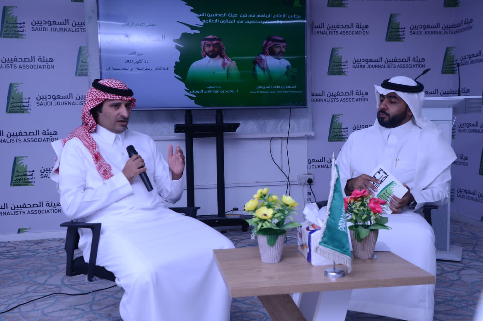 استضاف الصالون الإعلامي في مجلس الإعلام الرياضي بفرع هيئة الصحفيين السعوديين بالأحساء الأستاذ سعد بن قاعد السبيعي، رئيس رابطة الهواة لكرة القدم بمحافظة الأحساء، ماء أمس الأحد 22 أكتوبر 2023 الموافق 6 ربيع الآخر 1445هـ وذلك بقاعة 22 فبراير بمقر فرع الهيئة بالأحساء.