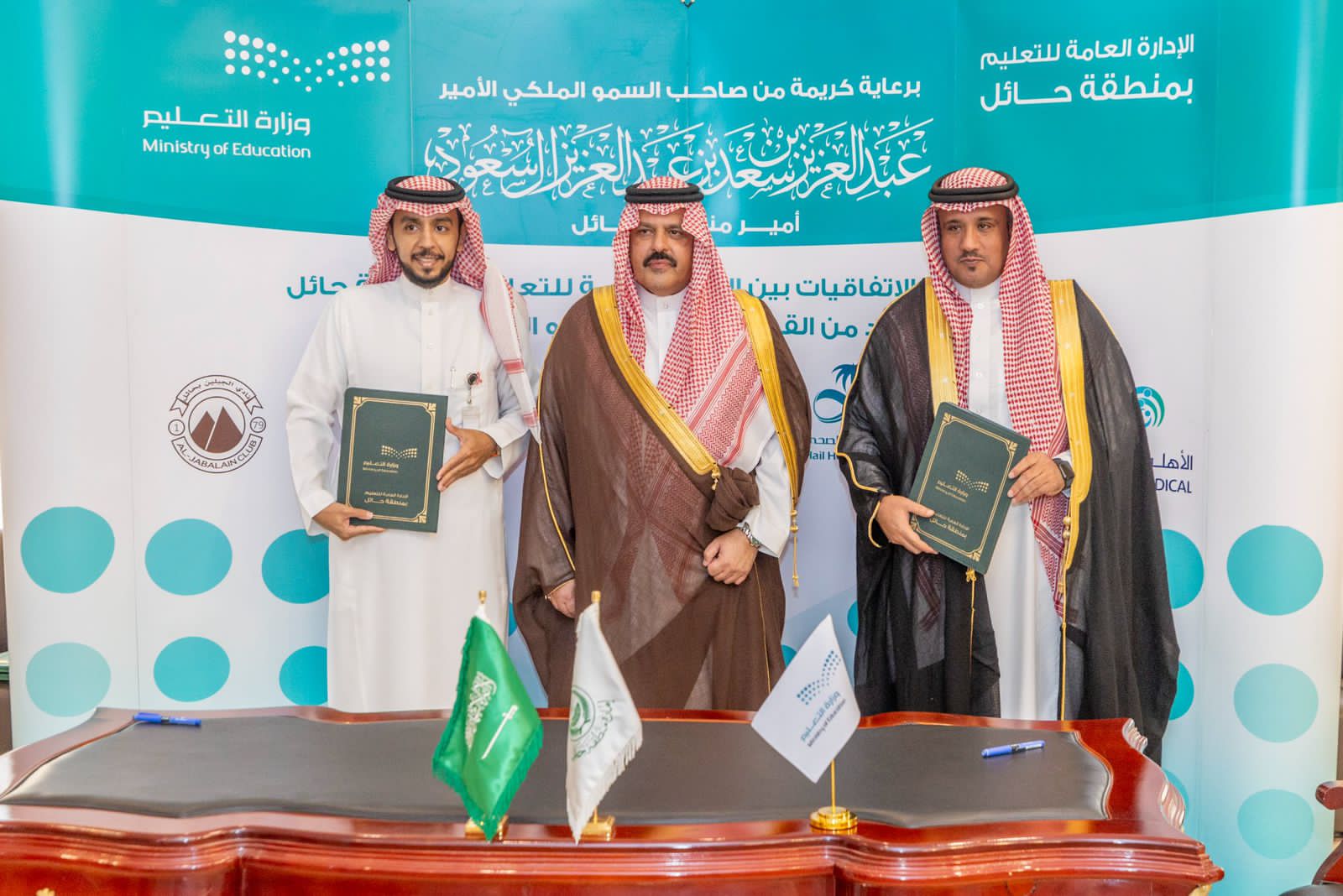 واختتم تعليم حائل اتفاقياته بالشراكة مع نادي الجبلين الرياضي بهدف تعزيز الصحة العامة للطلاب والطالبات وتهيئة البيئة التربوية المناسبة للأنشطة الرياضية والتعاون بين الطرفين في إقامة المناشط الرياضية الخاصة بأبنائنا الطلاب ، واستقطاب مواهب طلاب في مختلف المراحل الدراسية وصقلها في مختلف الألعاب الرياضية.