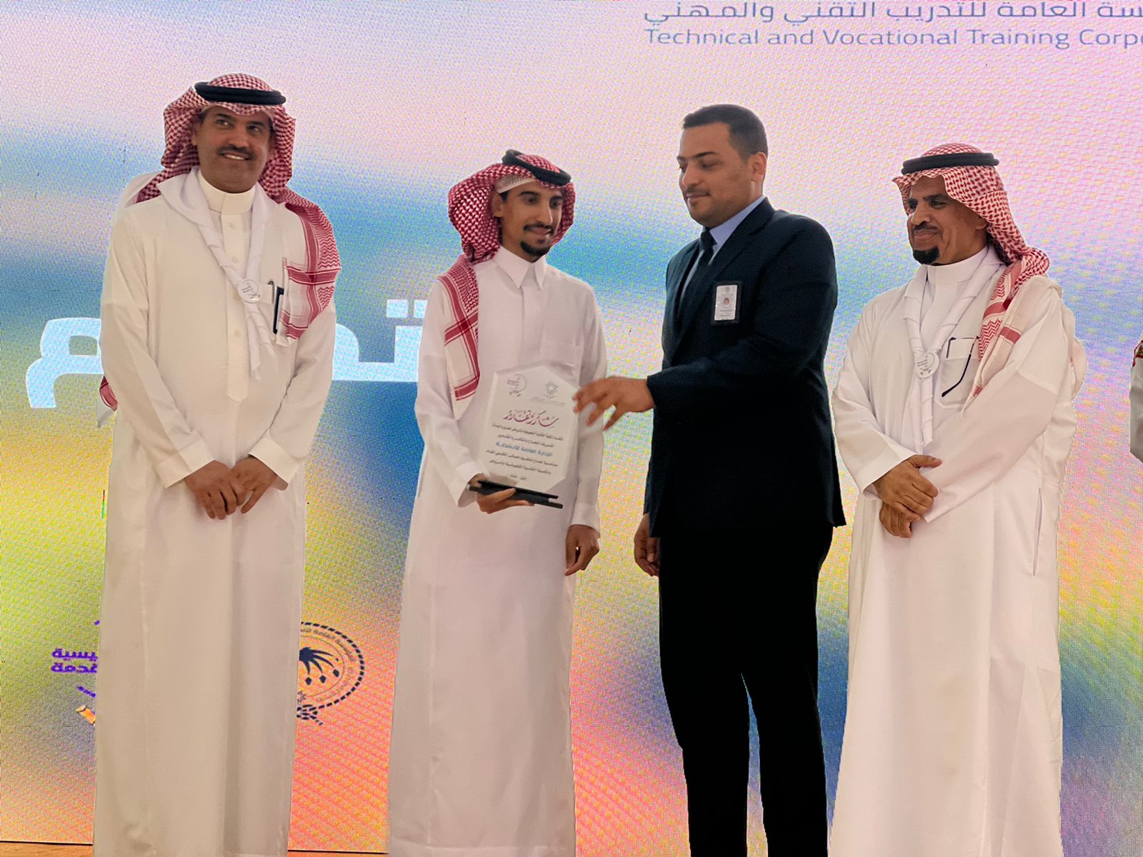وفي ختام الحفل تم تكريم الكليات التقنية التطبيقية للبنين والبنات متثملة في عميد كلية البنين المهندس فراس الرشيدي وعميدة الكلية البنات الأستاذ زبيدة الشهراني وفريق العمل على التنظيم المميز، كما تم تكريم اللجان المنظمة والقيادات وشركاء النجاح.
