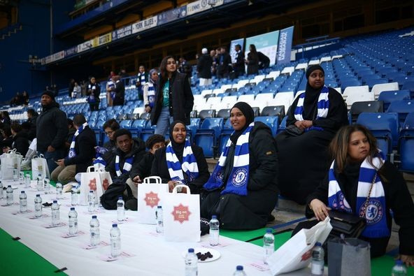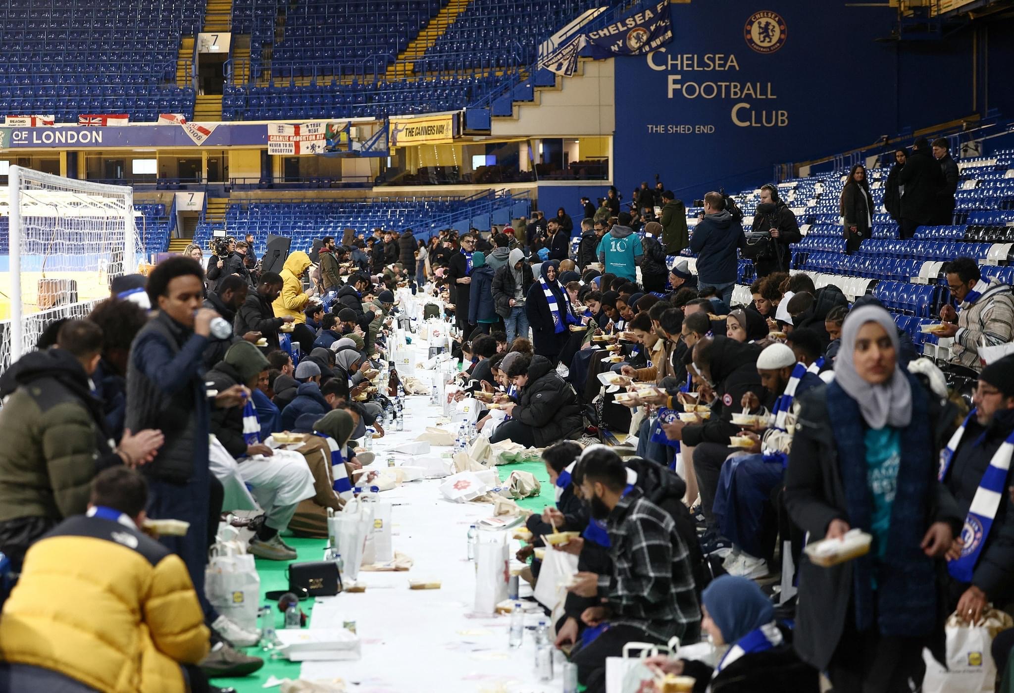 نظم نادي تشيلسي، أمس الأحد، بالتعاون مع مشروع الخيمة الرمضانية، أول إفطار جماعي للمسلمين على ملعب "ستامفورد بريدج"، بحضور المئات من المسلمين للاحتفال بشهر رمضان المبارك، وذلك في احتفال مشروع الخيمة الرمضانية بالذكرى العاشرة لتأسيسه.