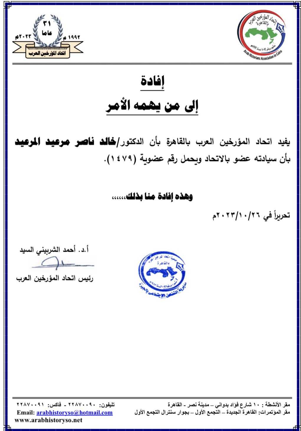 انضم اللواء م خالد ناصر مرعيد المرعيد لعضوية اتحاد المؤرخين العرب.