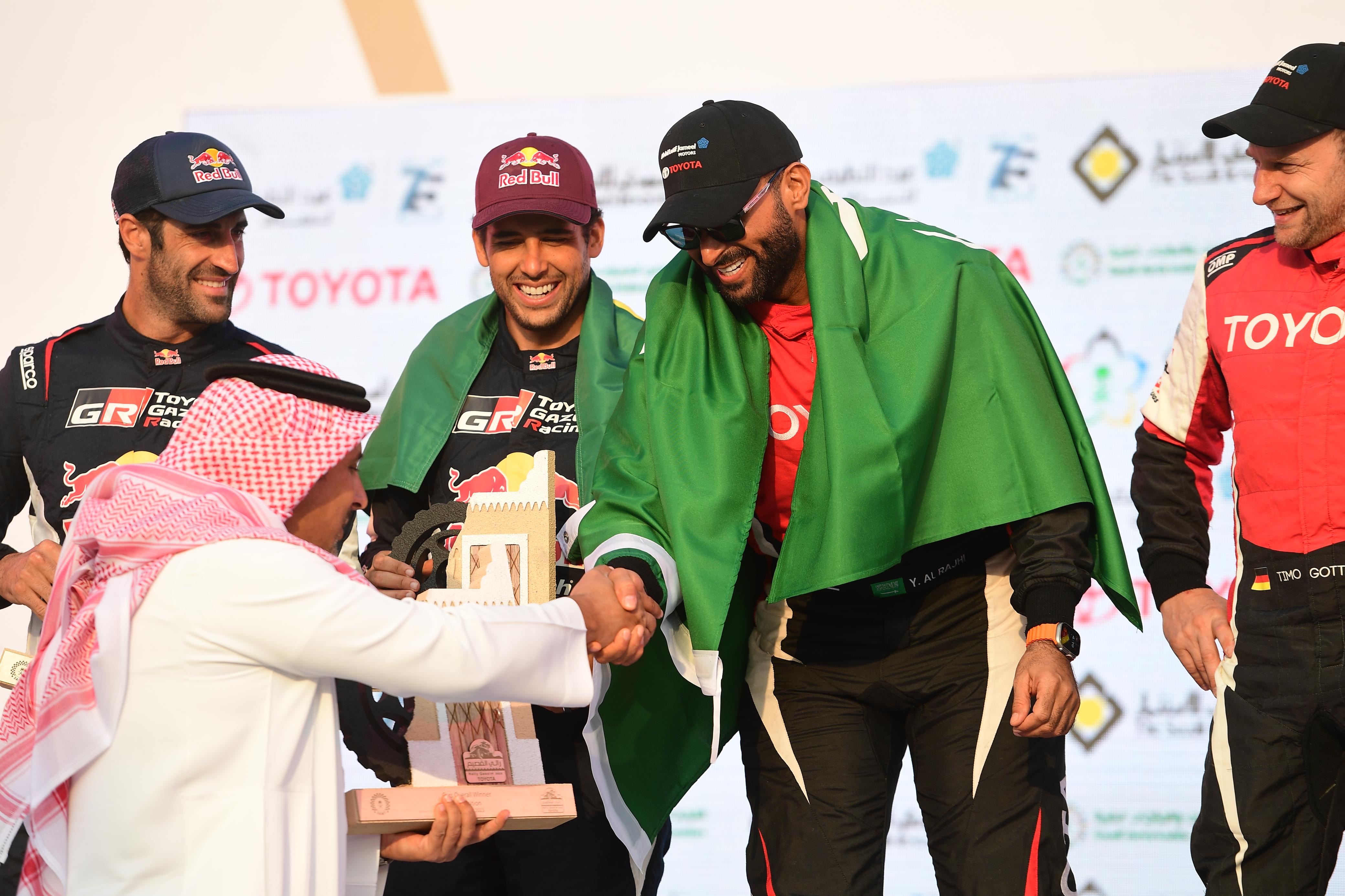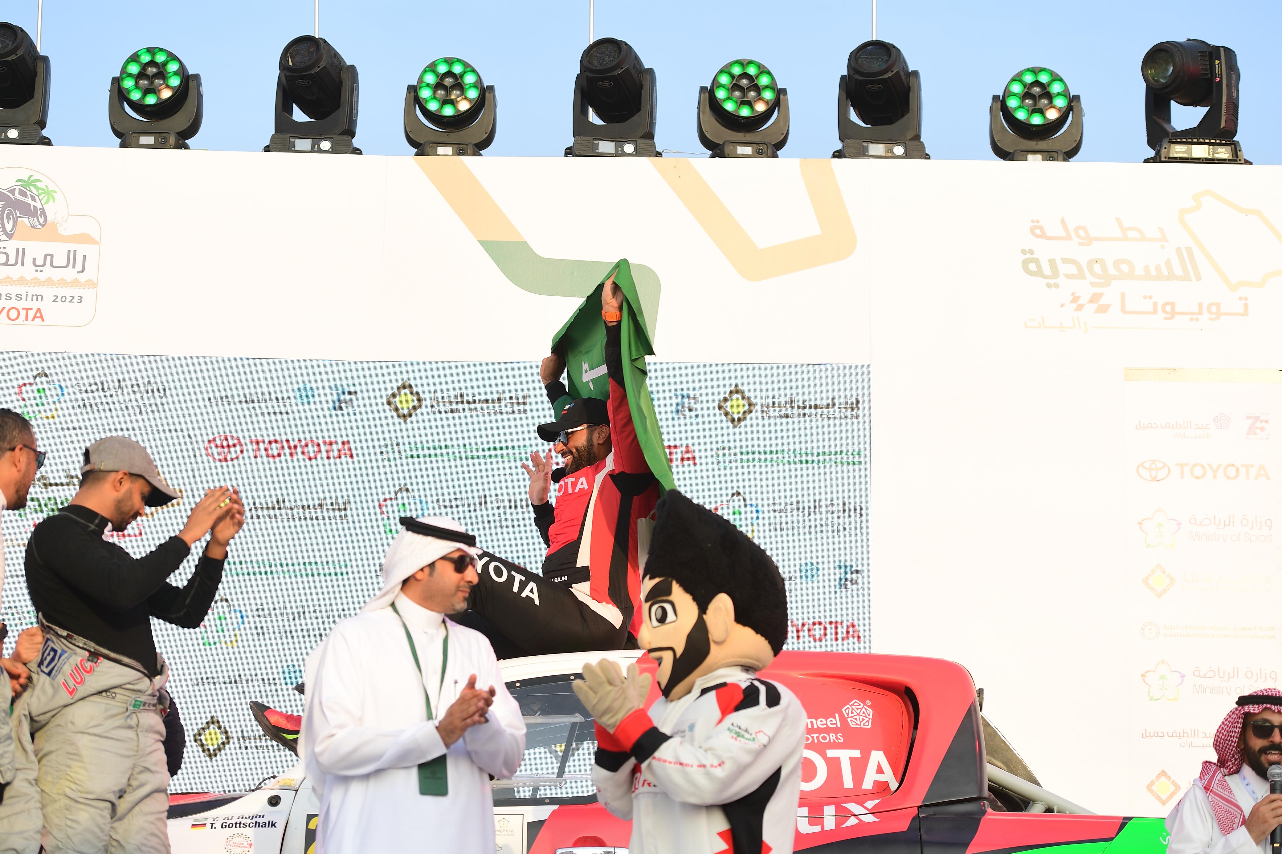 توج البطل العالمي وحامل لقب البطولة السعودية تويوتا، يزيد بن محمد الراجحي، بلقب رالي القصيم تويوتا، والذي يعد ثالث جولات البطولة السعودية تويوتا للراليات الصحراوية بتنظيم من الاتحاد السعودي للسيارات والدراجات النارية في الفترة من 10 إلى 12 نوفمبر الجاري في منطقة القصيم.