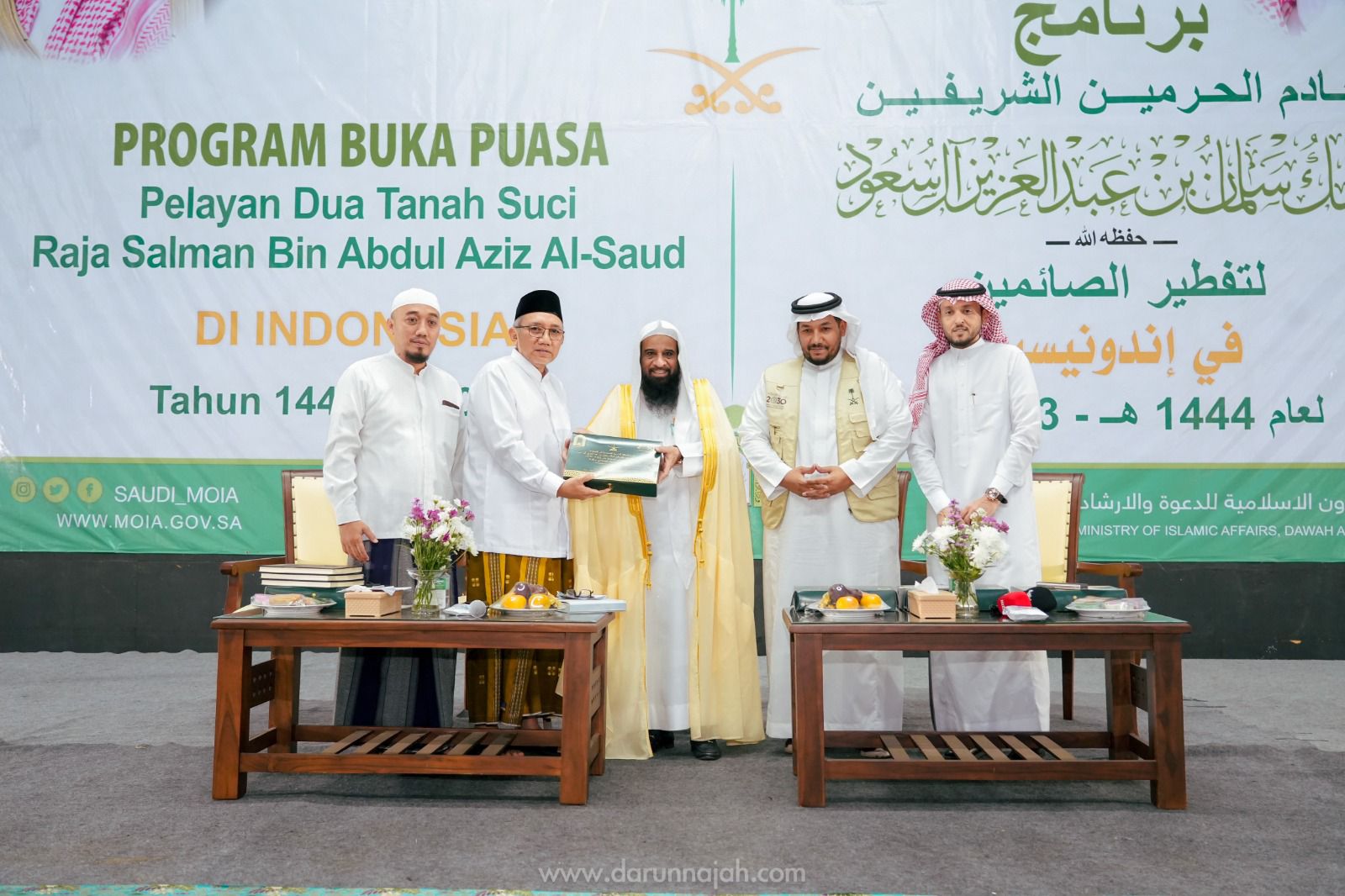أقامت وزارة الشؤون الإسلامية والدعوة والإرشاد مائدة إفطار رمضاني في معهد دار النجاح بالعاصمة جاكرتا، بحضور الملحق الديني في سفارة المملكة بجاكرتا الشيخ أحمد بن عيسى الحازمي، ورئيس المعهد الدكتور كياهي الحاج صفوان مناف بن عبد المناف، وذلك ضمن برنامج خادم الحرمين الشريفين لتفطير الصائمين الذي تنفّذه الوزارة في جمهورية اندونيسيا.