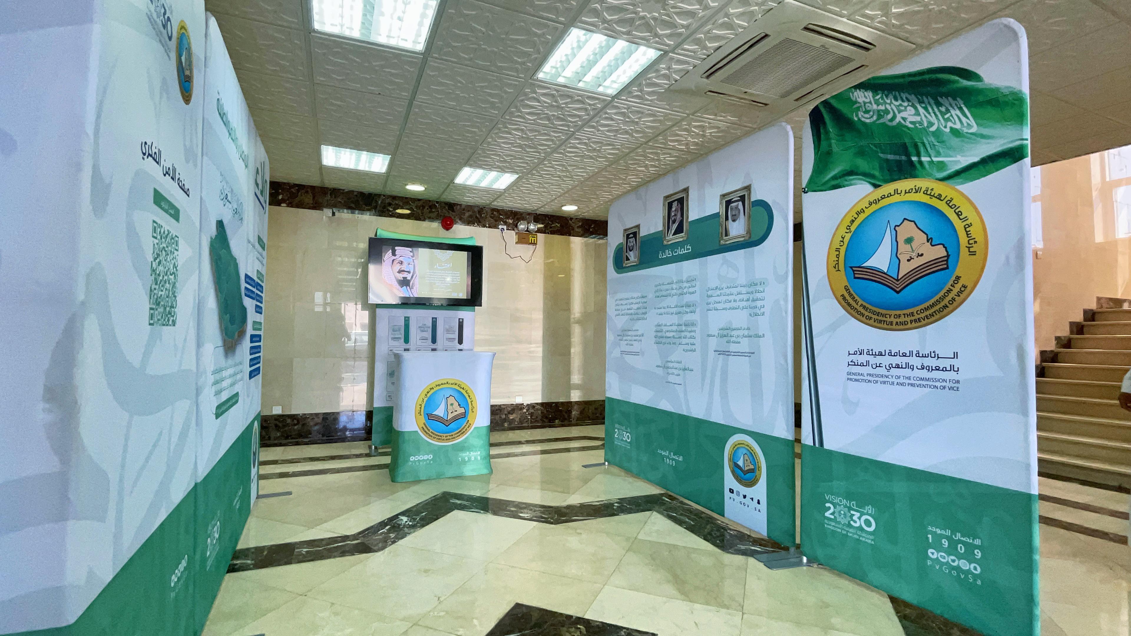 بعد ذلك قام سعادته بتفعيل المعرض التوعوي "ولاء" واستمع لشرحٍ مفصل عن مضامينه. حيث يهدف إلى بناء الفكر السليم والمحافظة عليه وتحصين النشء والشباب من الأفكار الضالة، عبر الشاشات الرقمية واللوحات التوعوية.