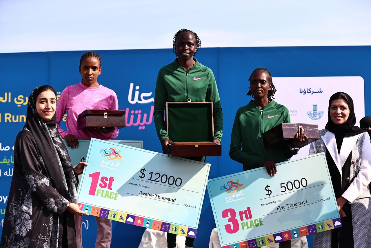 أما في الجانب النسائي فقد توجت المتسابقة  «. Lilian kasait» بدرع المركز الأول وتحصلت على مبلغ (١٢٠٠٠ ) دولار فيما حلت في المركز الثاني المتسابقة  «. Yenawa Kefale» وتحصلت على مبلغ (٦٠٠٠ ) دولار وجاءت المتسابقة « Irine Cheptai » في المركز الثالث متحصلة على مبلغ (5000 ) دولار ..