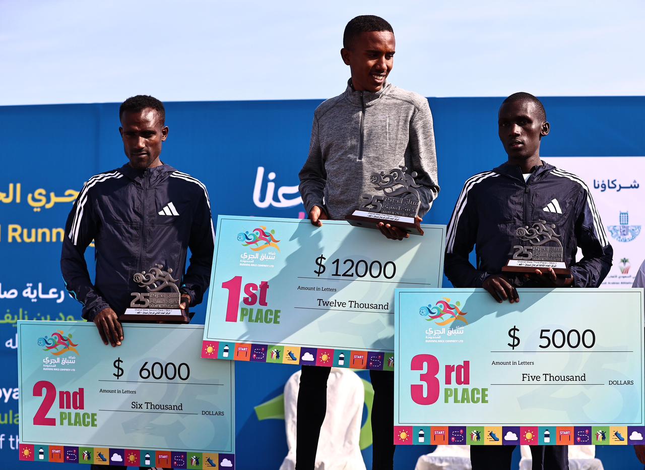 أكثر من (6) الاف متسابق ومتسابقة شاركوا بفعالية كبيرة في سباق الجري الخيري السنوي الـ (25)، وأضفوا بحماسهم ومثاليتهم الكثير من الإثارة على أجواء السباق، فقد توج في السباق المفتوح المتسابق الجنسية «أثيوبيا » بدرع المركز الأول ومبلغ ( ١٢٠٠ ) دولار ( Biniam Mehary )