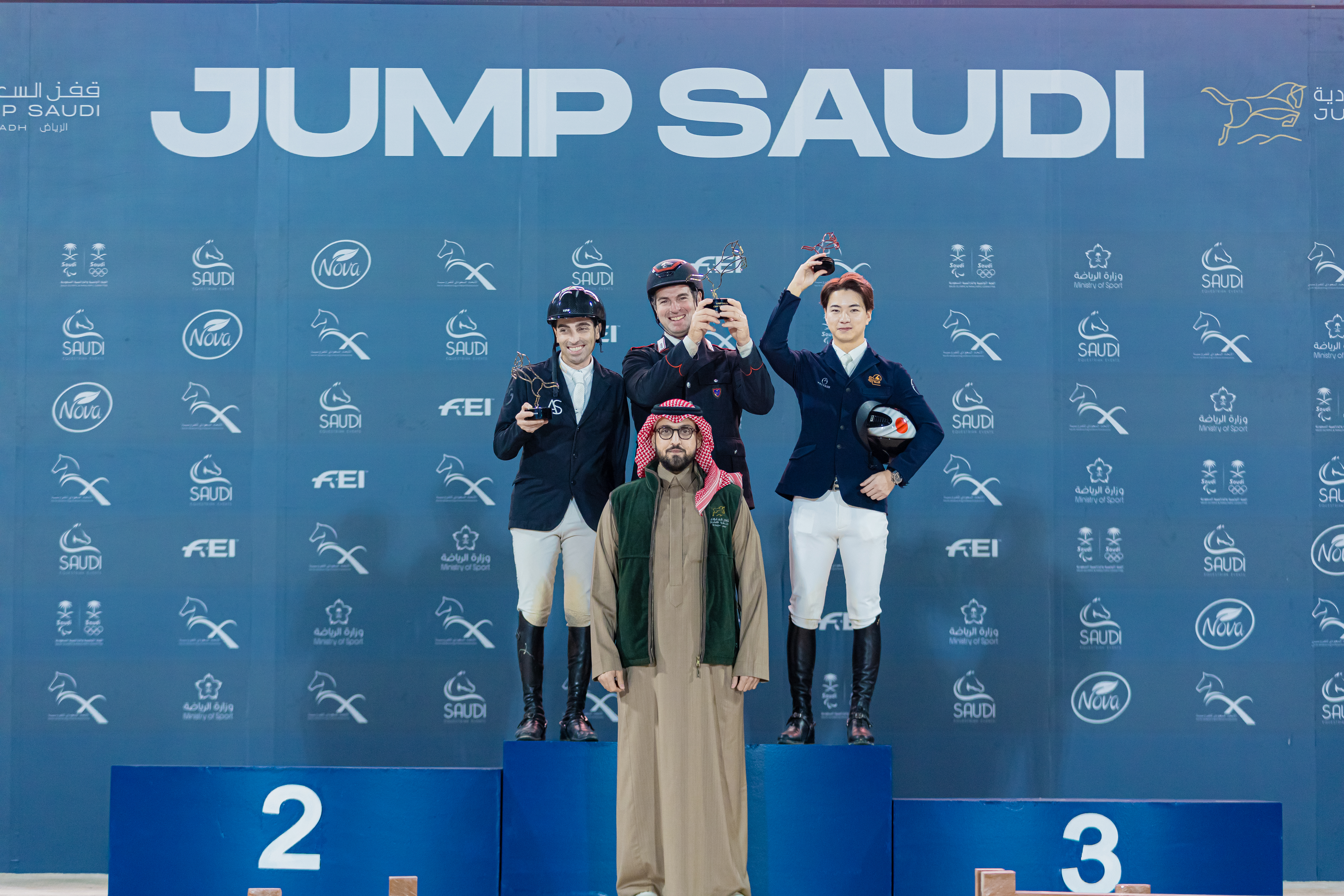 ونجح الفارس الإيطالي المصنف 26 عالمياً بخطف اللقب في ختام أشواط الأسبوع الأول من البطولة لفئة (4 نجوم ـ ارتفاع 1.55 متر) بعد أن أنهى الشوط الرابع بزمن وقدره 35.09 ثانية، فيما حل الفارس البلجيكي عبد القادر سعيد في المركز الثاني بـ (36.09 ثانية)، وجاء ثالثاً الفارس الياباني مايك كاواي (38.52 ثانية).