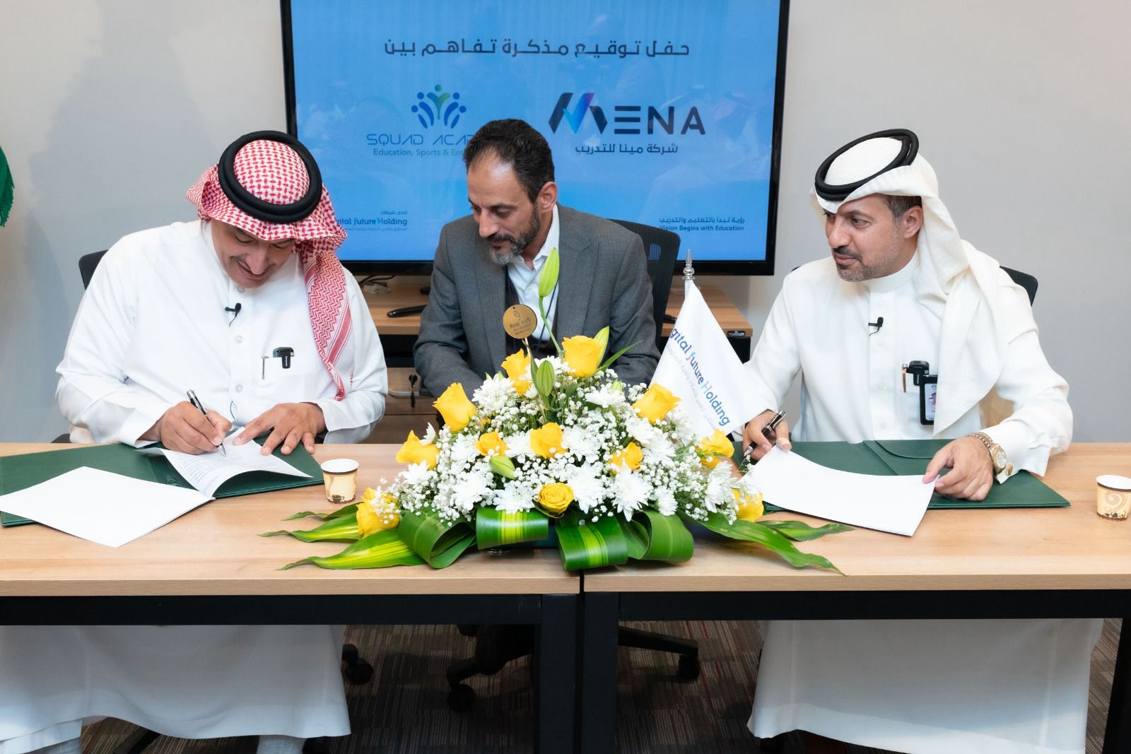 في تحالف هو الأبرز من نوعه وأهدافه، بين اكاديميات التدريب الخاص، تم يوم أمس الأول توقيع اتفاقية تعاون بين شركة  مينا للتدريب  وأكاديمية سكواد Squad للتدريب، وذلك في مقر شركة مينا في الرياض، وذلك لتقوم شركة  مينا للتدريب  بتخصيص جزء من المرافق والبُنى التحتية الحديثة والمجهزة بأفضل التقنيات لأكاديمية سكواد، لتقوم بتقديم الخدمات التدريبية في التخصصات الرياضية والترفيهية والسياحية والثقافية بجوانبها الإدارية والفنية والتقنية، عن طريق توظيف أحدث المناهج والبرامج والتقنيات المعمول بها عالمياً. وذلك للتعامل مع الطلب المتنامي للكوادر والقيادات السعودية المؤهلة والمدربة لإدارة وتشغيل المنظومات والأحداث الرياضية والسياحية والثقافية والترفيهية والتراثية التي ستشارك أو ستستضيفها المملكة في السنوات القادمة. حيث أن ذلك يعتبر من أهم الأدوات اللازمة لدعم وتشغيل وحماية الاستثمارات المليارية الضخمة التي وفرتها وستوفرها الدولة لتجهيز المنشآت وإقامة الأحداث العالمية في الحقل الرياضي والترفيهي والسياحي والثقافي بل والتجاري. وتُعد هذه الخطوة تجسيداً لتوجهات المملكة النابعة من رؤية المملكة 2030 المباركة، ضمن اهتمام خادم الحرمين الشريفين وسمو ولي عهده الأمين حفظهما الله.