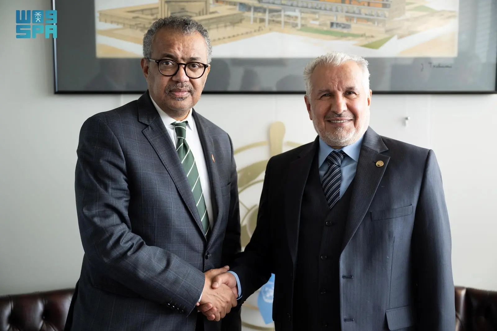 التقى المستشار بالديوان الملكي المشرف العام على مركز الملك سلمان للإغاثة والأعمال الإنسانية، الدكتور عبد الله بن عبد العزيز الربيعة أمس، المدير العام لمنظمة الصحة العالمية الدكتور تيدروس أدهانوم، وذلك على هامش أعمال المنتدى العالمي الثاني للاجئين المنعقد في مدينة جنيف بسويسرا.