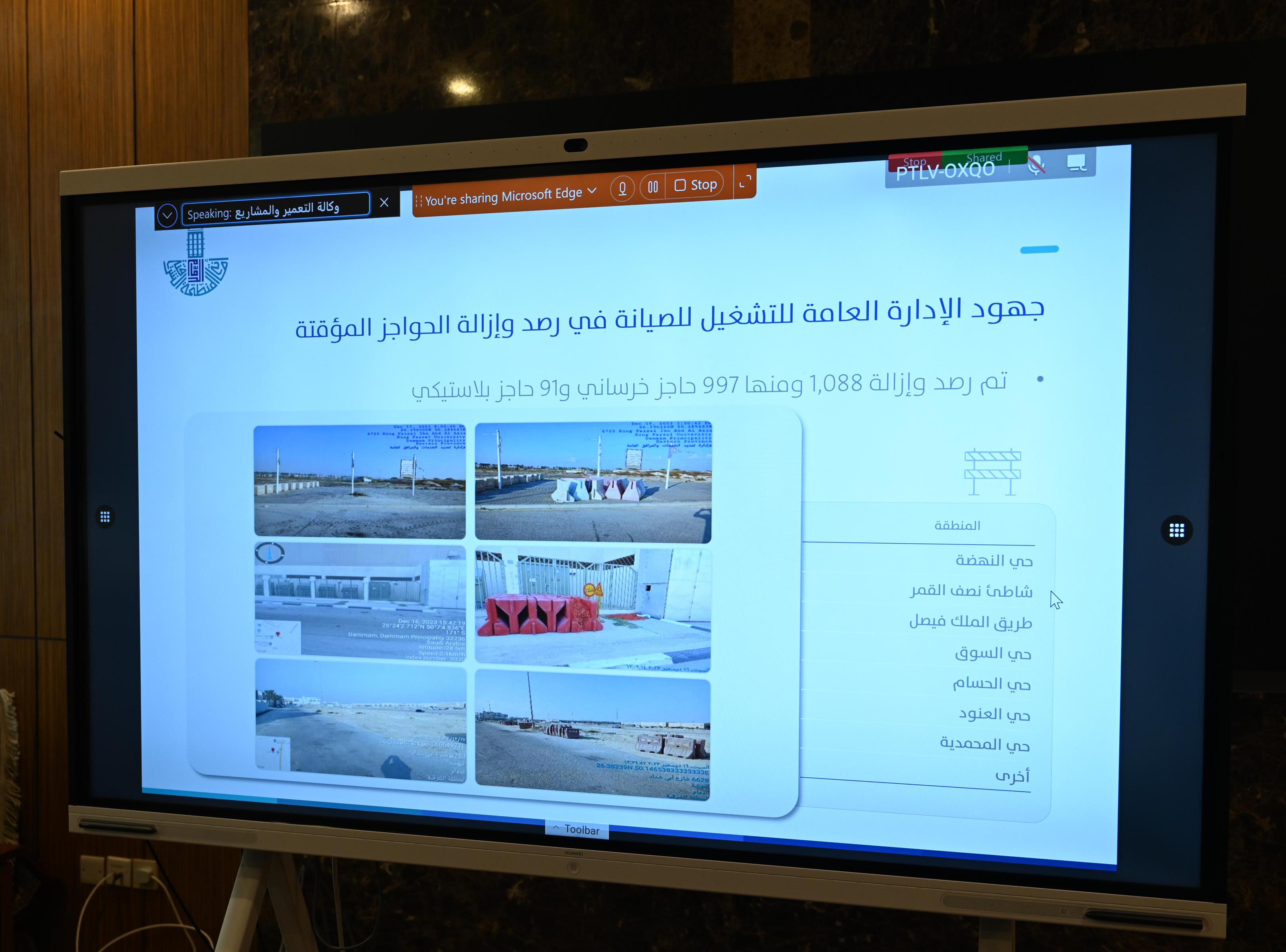 واطلع المهندس فهد الجبير خلال الاجتماع على عرض الإدارة العامة لتحسين المشهد الحضري، الذي تضمن حصر ونسب الإنجاز لمظاهر التشوه البصري للمناطق ذات الأولوية، لتكثيف الجهود لمعالجتها، فيما تم التركيز على عنصر الحواجز الخرسانية، والمواقع الإنشائية، وأكد على تشديد العمل على تطبيق دليل تسوير مواقع الأعمال الإنشائية الذي اعتمده وزير الشؤون البلدية والقروية والإسكان مؤخرا، والهادف لتنظيم مواقع الأعمال الإنشائية للمباني ومظهرها الخارجي، من خلال تحديد مواصفات فنية لمتطلبات تسوير مواقع الإنشاءات في تلك المشاريع، والذي يسهم بدوره في الحد من التشوه البصري، كما أكد على تطبيق لائحة الجزاءات في حق المخالفين لدليل استخدام الحواجز المؤقتة في مناطق العمل، بهدف الحد من مظاهر التشوه البصري، والهادف إلى توحيد الإجراءات والعمليات والمواصفات والمتطلبات الخاصة بالحواجز الخرسانية الخاصة والحد من التعدي على المرافق العامة.