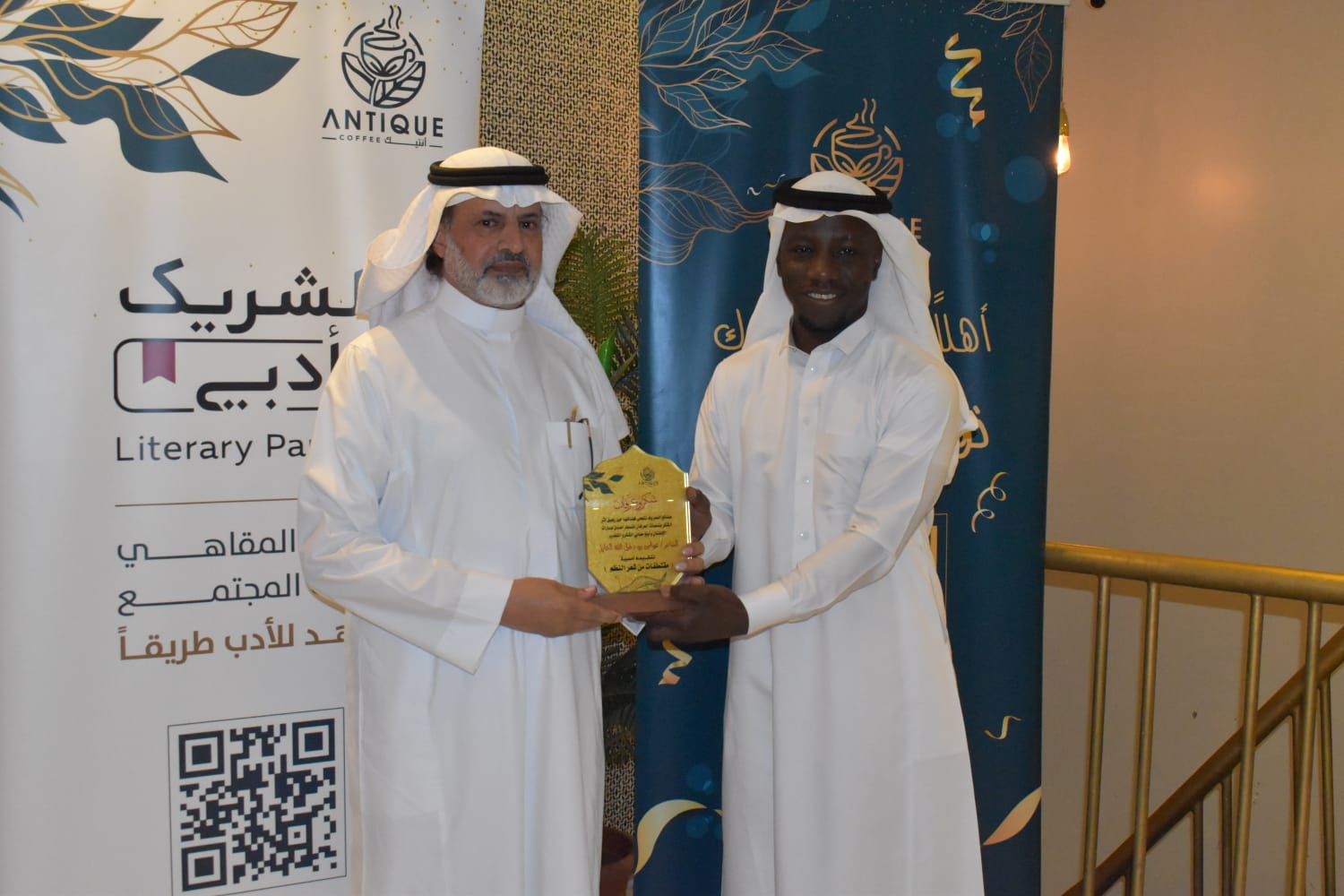 وفي نهاية الأمسية قدم مقهى انتيك هدية للشاعر عواض الحارثي درع تذكاري سلمه له الأستاذ إسماعيل هوساوي مدير المقهى تقديراً لجهوده في إحياء هذه الأمسية وحضر الأمسية جمهور من عشاق الشعر الشعبي.