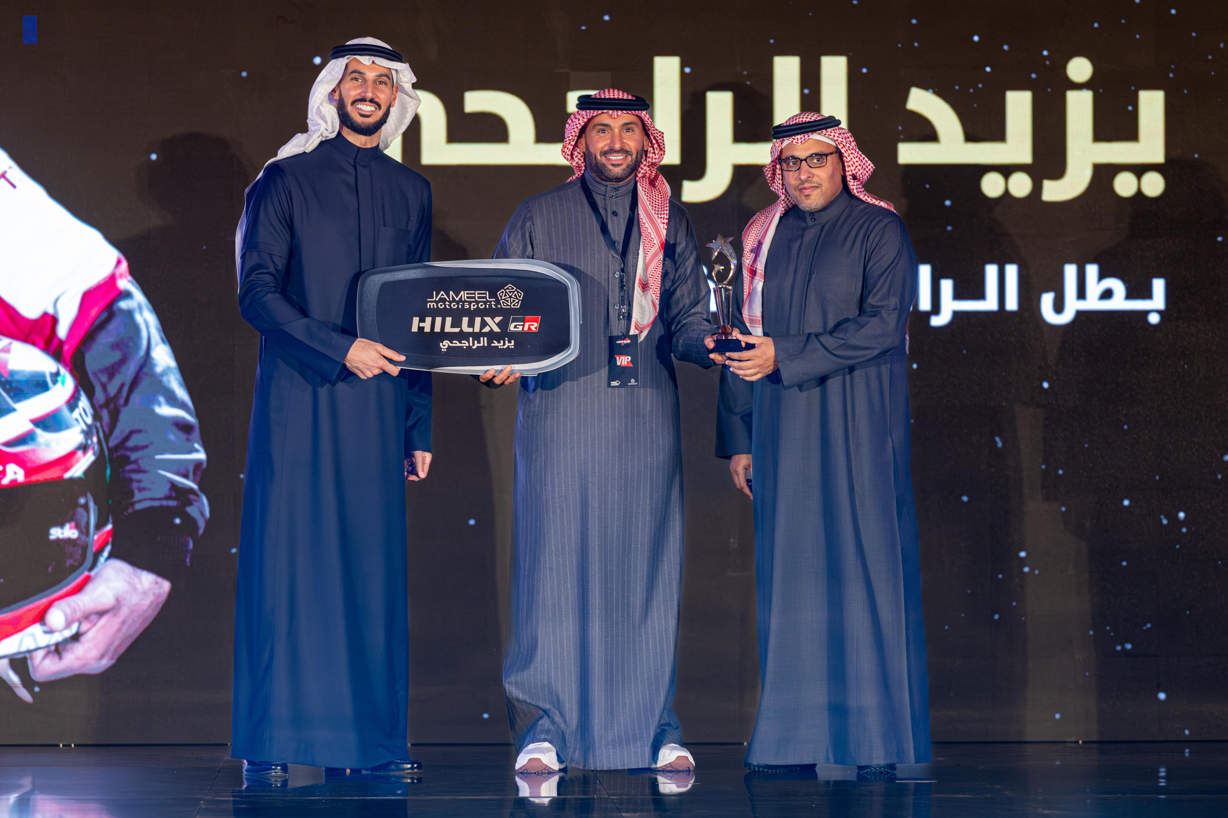 قدّم كل من صاحب السمو الأمير خالد بن سلطان الفيصل، رئيس الاتحاد السعودي للسيارات والدراجات النارية، والأستاذ حسن جميل، نائب رئيس مجلس إدارة شركة عبد اللطيف جميل، التكريم للسائق العالمي يزيد بن محمد الراجحي وذلك لتحقيقه لقب البطولة السعودية تويوتا لموسم 2023 ونجاحه في حملة الدفاع عن لقبه للمرة الثالثة على التوالي منذ عام 2019 مساء الأمس الموافق 23 من شهر ديسمبر الجاري في فندق انتركونتيننتال بالرياض.