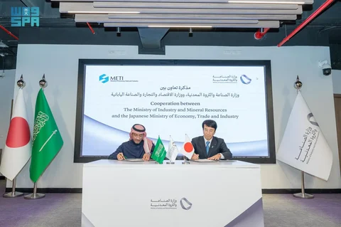 وقع معالي وزير الصناعة والثروة المعدنية الأستاذ بندر بن إبراهيم الخريف ومعالي وزير الاقتصاد والتجارة والصناعة الياباني السيد سايتو كين، مذكرة تعاون بين الوزارتين في مجال التعدين والموارد المعدنية، وذلك في مقر الوزارة في مدينة الرياض.
