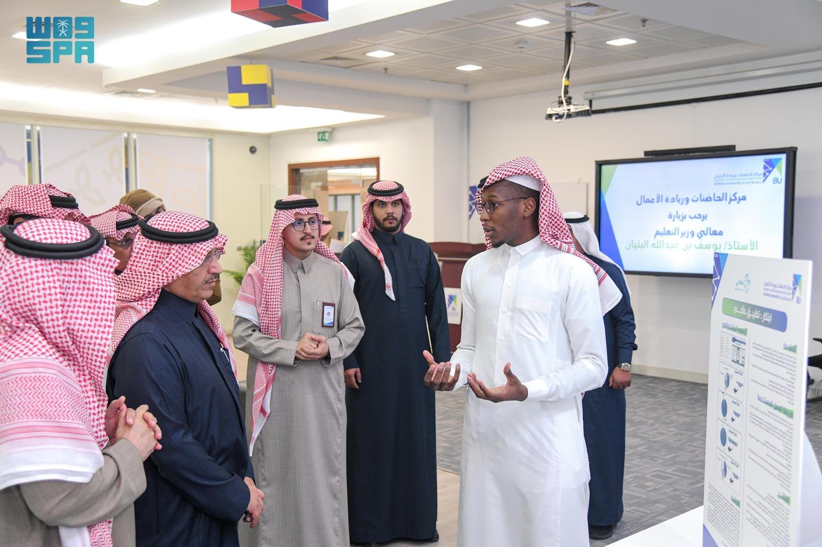 وتضمَّنت الزِّيارة جولة على مركز الحاضنات وريادة الأعمال، واستمع إلى شرح تفصيلي عن ما يقدمه المركز من خدمات للموهوبين والمبتكرين وتيسير حاضنات الأعمال للشركات الناشئة.