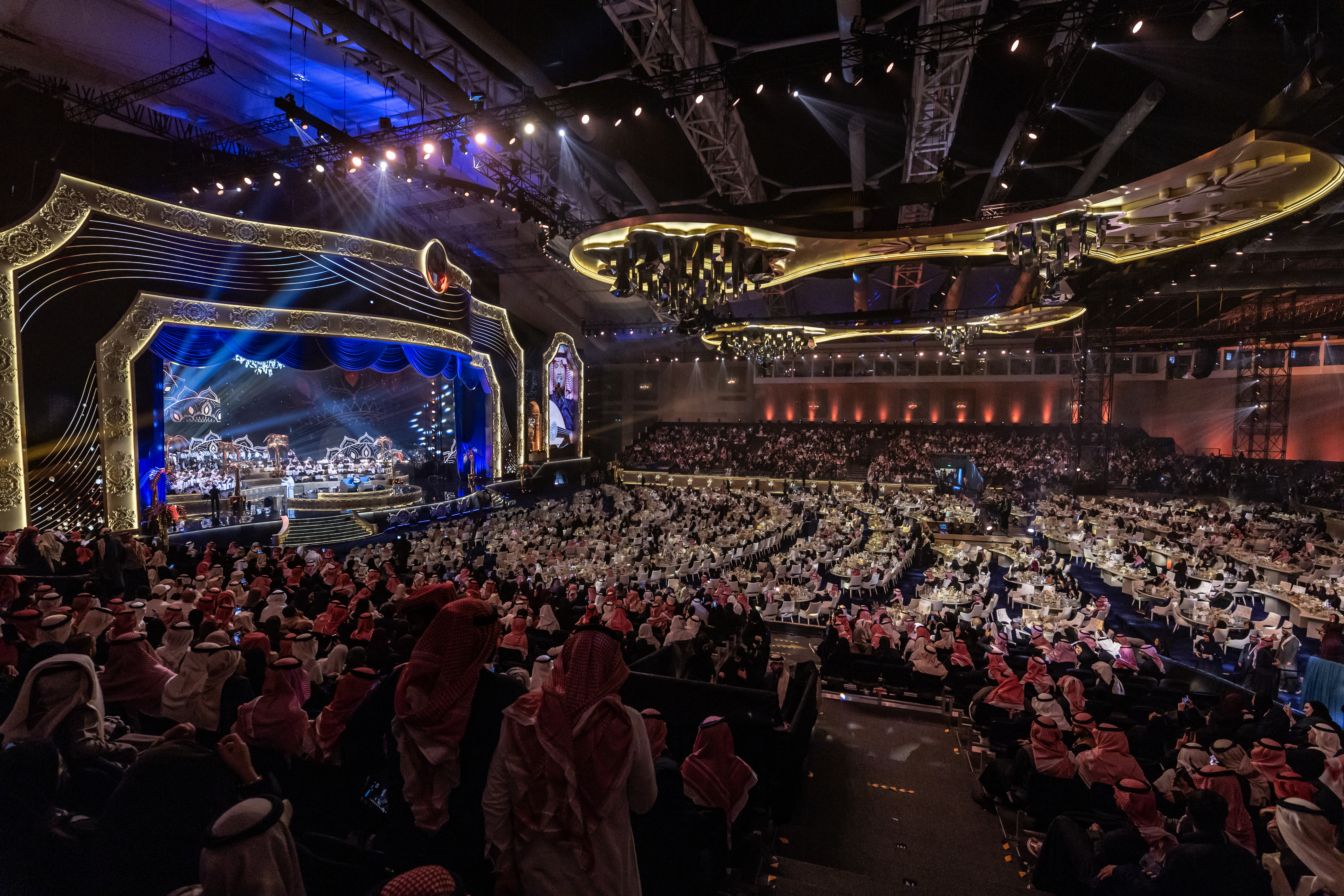 وخلال حفل الليلة الأولى، كرم معالي المستشار تركي ال الشيخ،رئيس مجلس إدارة الهيئة العامة للترفيه الفنان محمد عبده بمناسبة اليوبيل الماسي بأسطوانة من الذهب الخالص، قائلا: "اليوم نكرم فنان سعودي قدير، أسطورة الفن السعودي والعربي"، مؤكدا "أن محمد عبده هو الفنان الوحيد بالعالم الذي غنى لوطنه أكثر من 300 أغنية"، قبل أن يقوم محمد عبده هو الآخر بلفتة إنسانية نبيلة من خلال تبرعه بالأسطوانة الذهبية ضمن الحملة الشعبية لإغاثة الشعب الفلسطيني.
