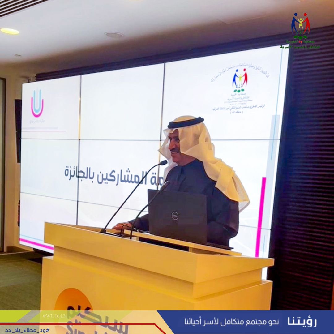 جاء ذلك في الحفل الختامي للجائزة الذي نظمته جمعية ود الخيرية للتكافل والتنمية الأسرية بالخبر أمس الأول بحضور مدير فرع وزارة الموارد البشرية والتنمية الاجتماعية عبد الرحمن المقبل ، ورئيس مجلس إدارة شركة سبكيم المهندس خالد الزامل وعدد من المسؤولين ورجال الأعمال.