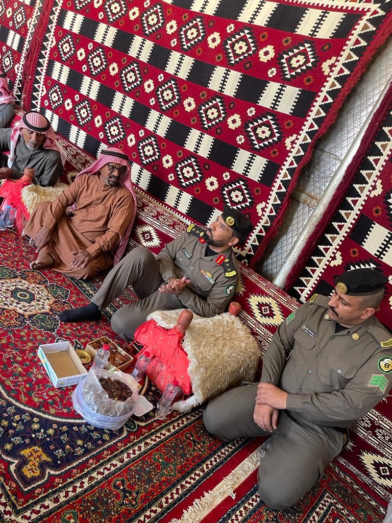 قدّم مدير مرور محافظة القريات، العقيد صقر بن مقبول السبيلة، ويرافقه وكيل رقيب، عبدالله بن بشير البلوي، تعازيه ومواساته "لعائلة الدغيشم" بوفاة والدهم مبارك بن عزام الدغيشم الشراري -رحمه الله- .