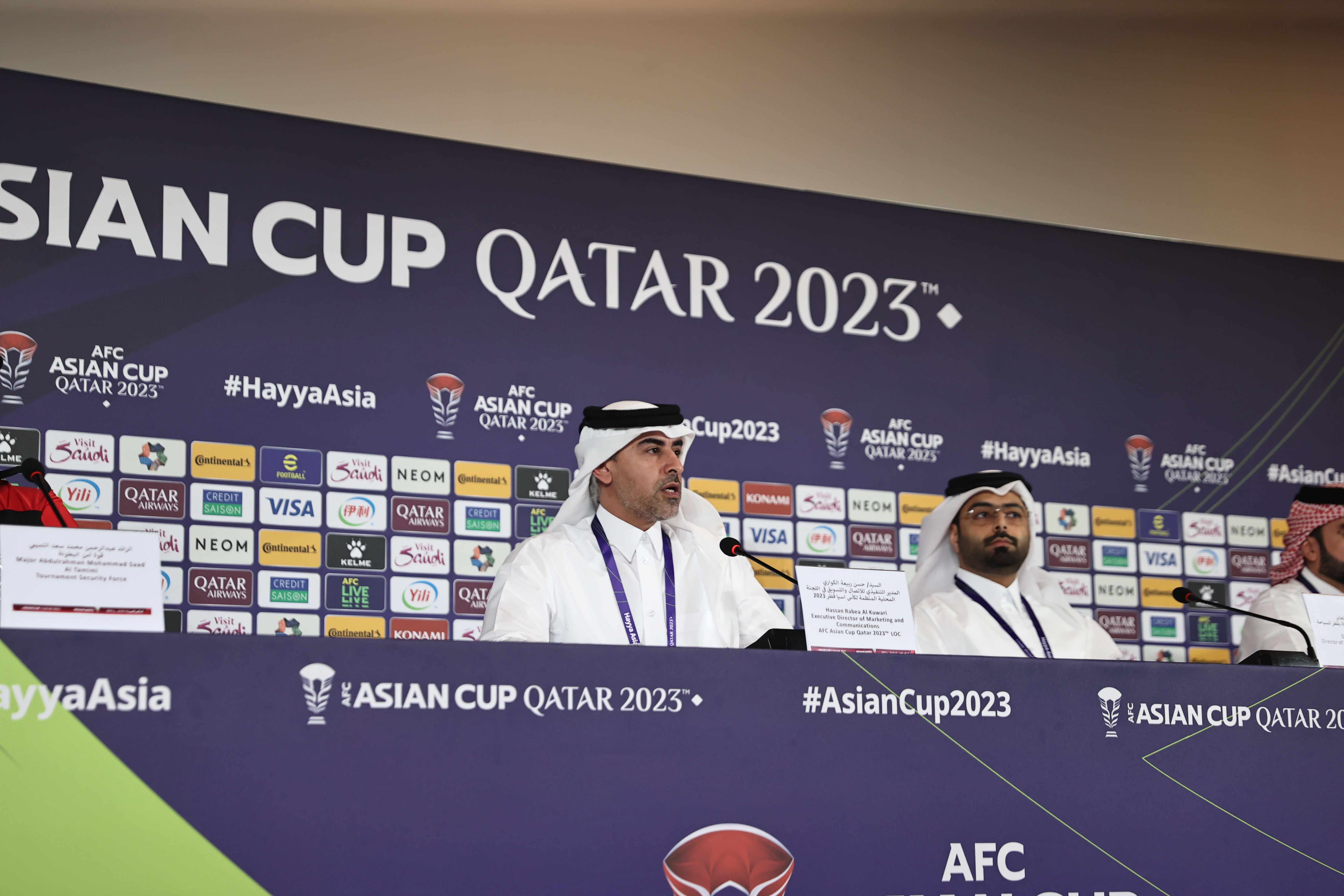 وأكد حسن الكواري المدير التنفيذي للاتصال والتسويق في اللجنة المنظمة لكأس آسيا AFC قطر 2023، أن قطر في كامل الجاهزية لاستضافة درة البطولات القارية للمرة الثالثة في تاريخها والترحيب بالمشجعين من أنحاء المنطقة والعالم، جاء ذلك خلال المؤتمر الصحفي الذي عقد اليوم في المركز الإعلامي الرئيسي للبطولة . فبراير 2024.
