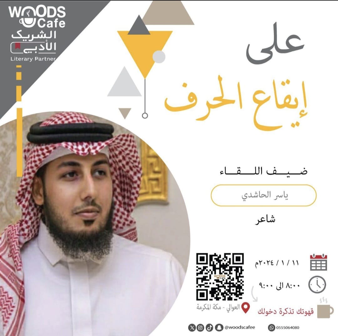 أحيا الشاعر ياسر الحاشدي أمسية شعرية ماتعة بمقهى وودز بحي العوالي يوم الخميس 11يناير الموافق ٣٠ جمادى الأخرة وإستهلها بقصيدة وطنية عن المملكة عنوانها: "الوطن الأبي" والتي يشيد فيها بهذا الوطن الأبي وقيادته الرشيدة يقول في بعض أبياتها: