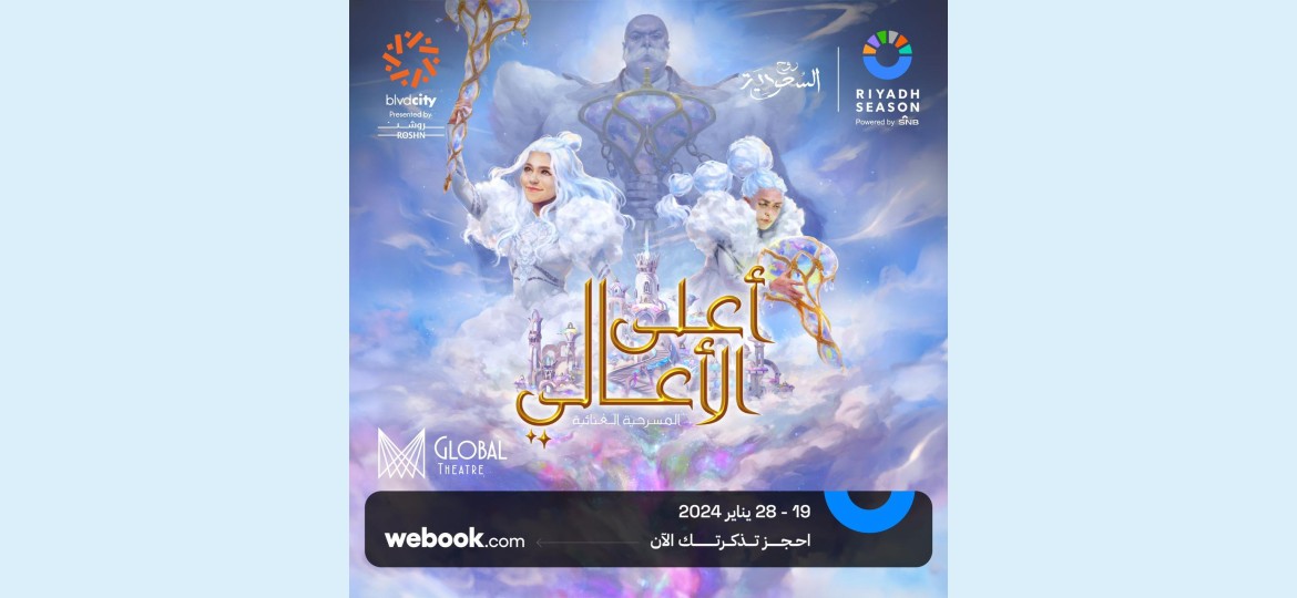 ضمن المسرحيات العربية والخليجية التي تقام في موسم الرياض في نسخته الرابعة المقامة تحت شعار Big Time، يستعد زوار منطقة بوليفارد سيتي لقضاء لحظات عائلية وأجواء غنائية ممتعة مع مسرحية "أعلى الأعالي" التي تقام في 19 – 28 يناير، على المسرح العالمي، حيث تقدم المسرحية عروضًا موسيقية تروي قصة خيالية رائعة.