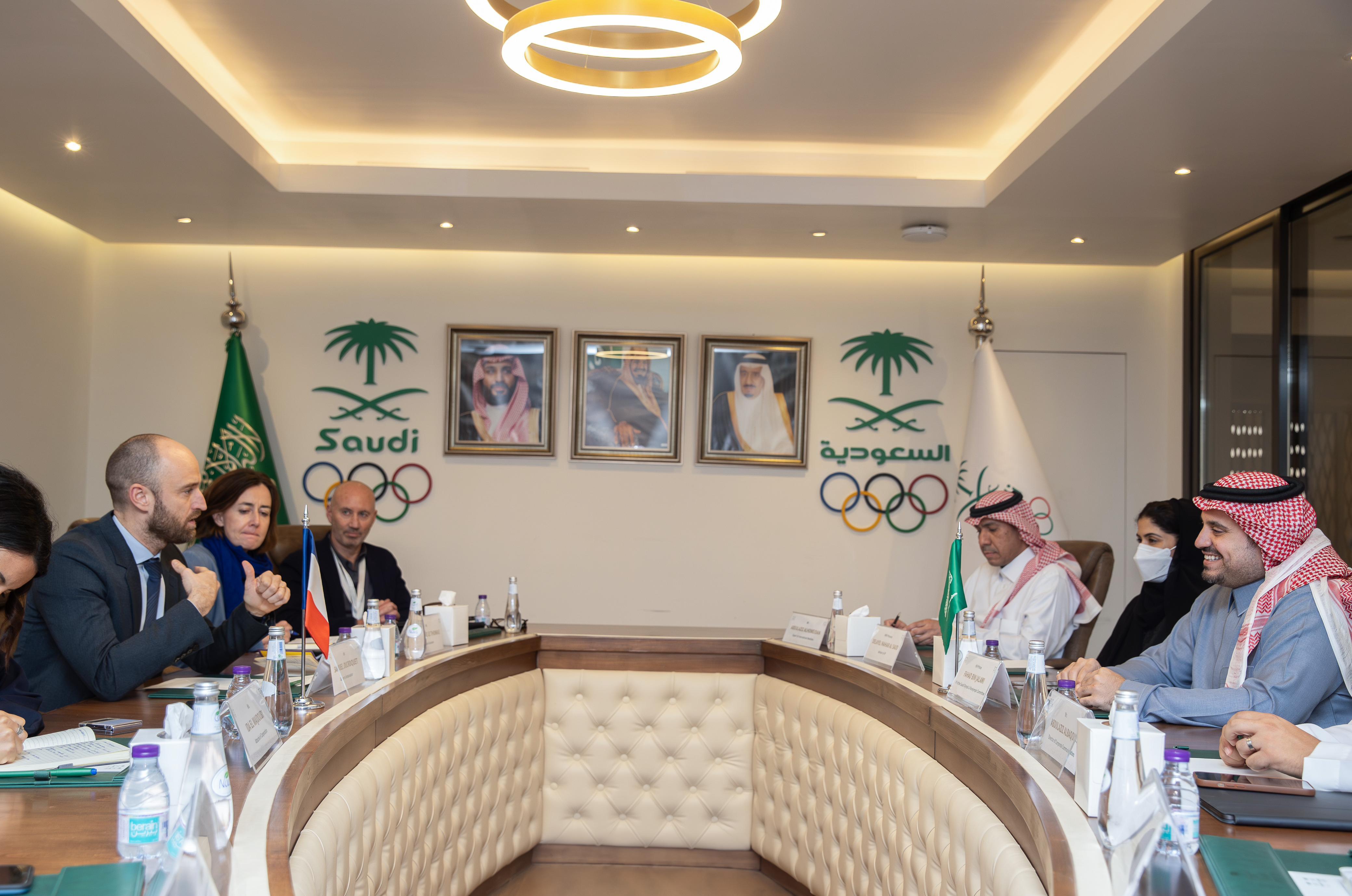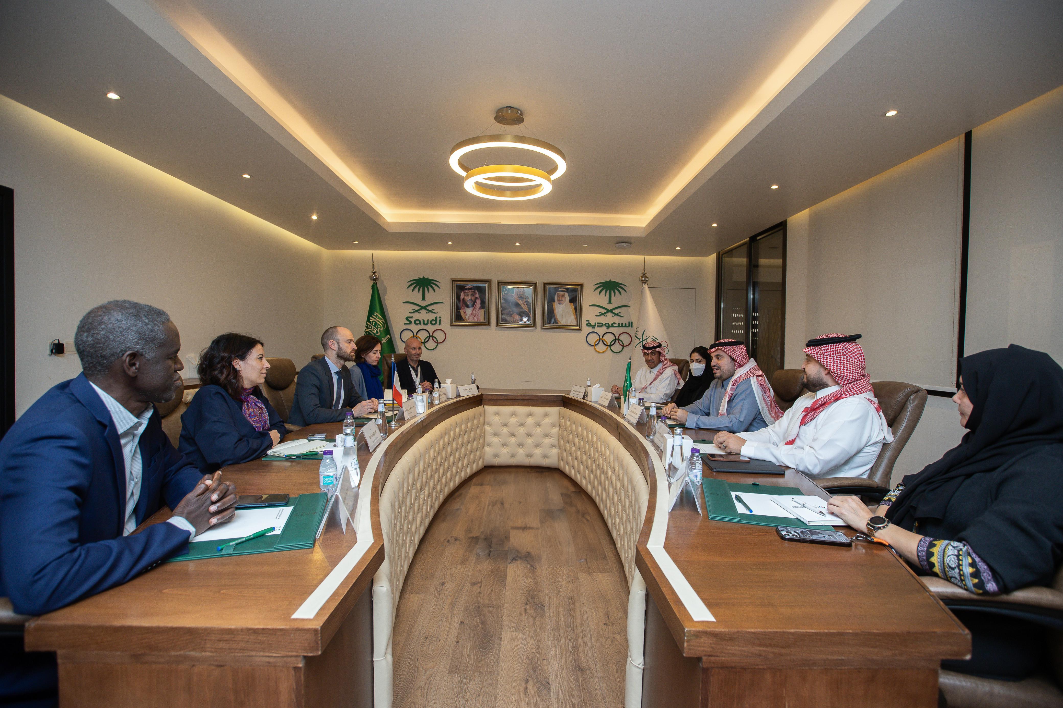 شهد اللقاء مناقشة عدد من المشاريع المشتركة بين الحركة الأولمبية والبارالمبية في المملكة والقطاع الرياضي في جمهورية فرنسا، لا سيما في ظل استضافة العاصمة الفرنسية باريس لدورة الألعاب الأولمبية والبارالمبية صيف هذا العام.