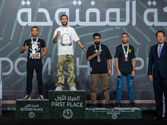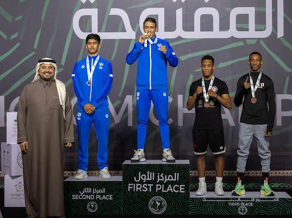 توَّج صاحب السمو الأمير فهد بن جلوي بن عبدالعزيز بن مساعد، نائب رئيس اللجنة الأولمبية والبارالمبية السعودية، أصحاب المراكز الثلاثة الأولى في فئة الكبـار لوزن 60 كجم، ضمن منافسات بطولة المملكة المفتوحة 2023، والتي نظمها الاتحاد السعودي للملاكمة التايلندية، على صالة الدفاع عن النفس، في مدينة الأمير فيصل بن فهد بن عبدالعزيز بالعاصمة الرياض، خلال الفترة من 18 إلى 20 يناير الجاري، بمشاركة أكثر من 375 ملاكماً وملاكمةً، تنافسوا في 181 فئة وزنية وعمرية.