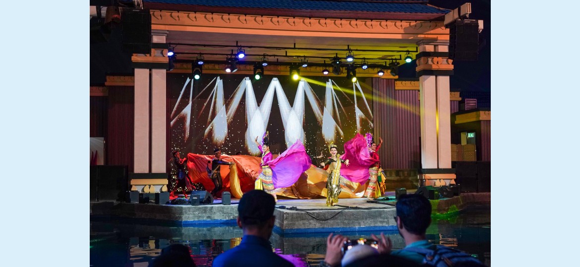 وتتضمن العروض رقصات تفاعلية وحفلات غنائية تعكس ثقافة آسيا وتاريخها العريق، حيث تقام على مسرح تفاعلي بشكل يومي بدءًا من الساعة الـ 4:45 عصرا حتى الساعة 10:00 مساء، وبأوقات متفاوتة.