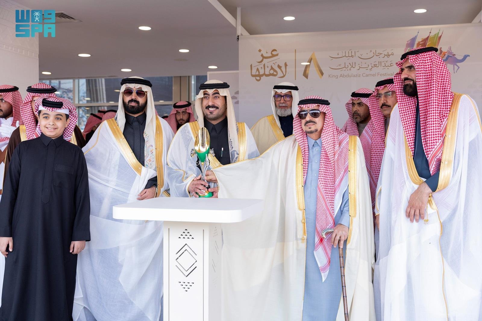 ثم تشرف ملاك الإبل الفائزة بتسلم جوائز المراكز الفائزة في جميع الألوان وفئات الجائزة من سمو الأمير فيصل بن بندر.