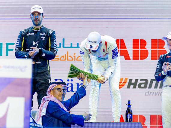 توّج صاحب السمو الملكي الأمير خالد بن سلطان الفيصل؛ رئيس الاتحاد السعودي للسيارات والدراجات النارية، وشركة رياضة المحركات السعودية، ، البريطاني جيك دينيس سائق فريق أندريتي غلوبال بالمركز الأول في الجولة الثانية من الموسم العاشر في بطولة العالم "إي بي بي للفورمولا إي 2024"، والتي تحتضنها المملكة على حلبة الدرعية التاريخية. ووسط حضور جماهيري وإعلامي كبير، انطلق السباق الذي ضم 22 سائقًا من 10 دول مختلفة، يمثلون 11 فريقًا عالميًا، وفيه تمكن البريطاني من خطف المركز الأول للسباق المثير، فيما جاء الفرنسي جان إيريك فيرن سائق فريق دي إس بينسكه في مركز الوصافة، واحتل النيوزيلندي نِك كاسيدي سائق فريق جاغوار تي سي إس المركز الثالث. وكانت المرحلة التأهيلية للسباق التي أقيمت قبل الحدث الرئيس، قد شهدت معادلة الفرنسي جان إيريك فيرن سائق فريق دي إس بينسكه للرقم القياسي المسجّل لأكثر عدد من المرات في صدارة مراكز الانطلاق (16 مرة)، والذي يحمله السويسري سيباستيان بويمي سائق فريق إنفيجن ريسينغ وتستكمل المنافسات القوية مساء يوم غدٍ السبت على حلبة الدرعية التاريخية (التي تستمد إضاءتها من تقنية (LED) الصديقة للبيئة)؛ بإقامة الجولة الثالثة من البطولة العالمية لسيارات فورمولا إي، إضافة إلى وجود العديد من الفعاليات والأنشطة الترفيهية المصاحبة في موقع السباق، على أن تنتقل البطولة عقب ذلك إلى مدينة ساوباولو في البرازيل، والتي ستحتضن الجولة الرابعة من الحدث العالمي.