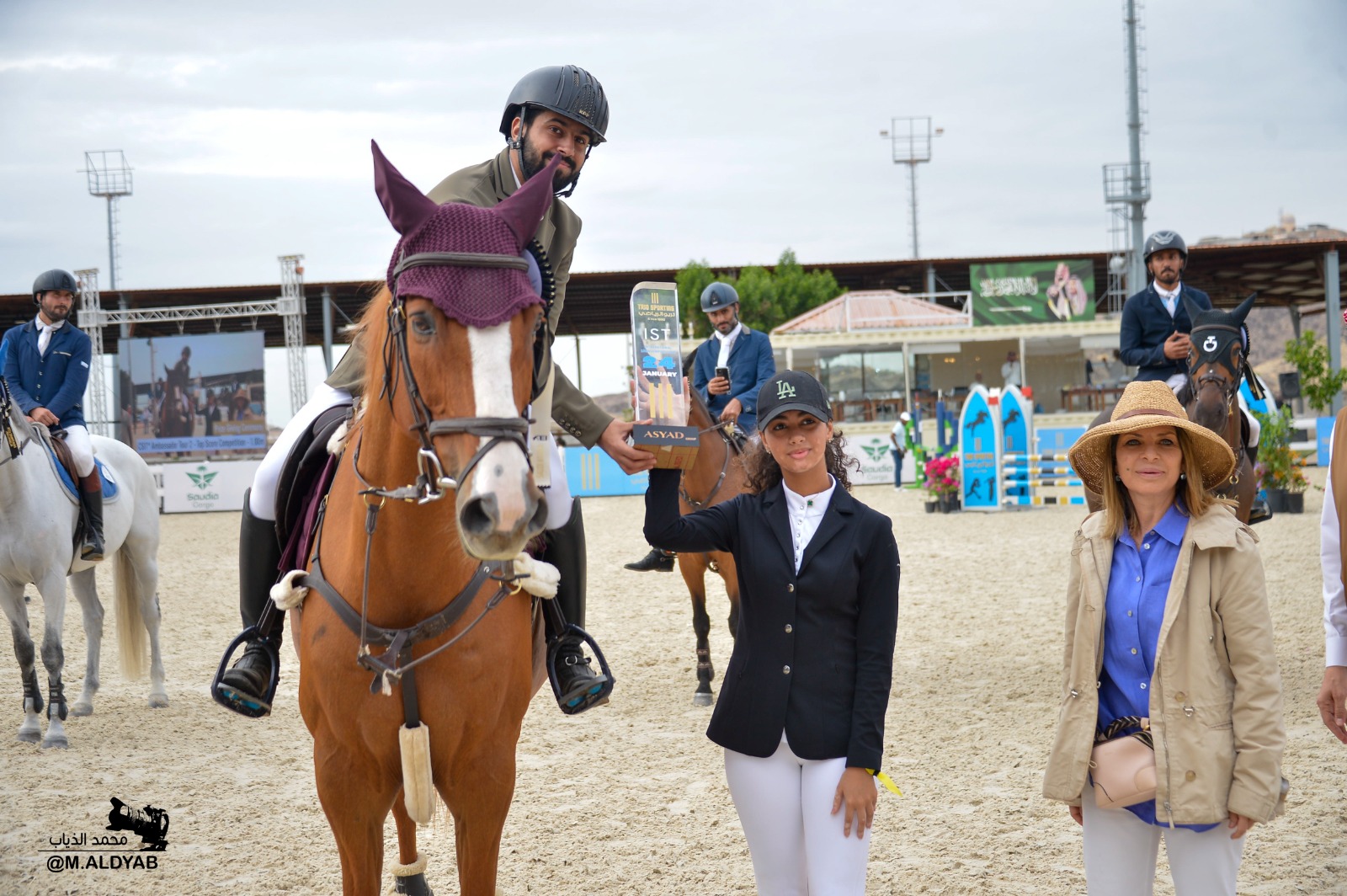 وكان الفارس محمد العساكر اول الفائزين في ثاني أيام البطولة بجمعه اكبر عدد من النقاط 1450 نقطة بزمن قياسي أيضا 88.84 ثانية لشوط السفراء بحواجزه البالغة 100 سم حيث استخدم ذكاءه والسرعة في اختصار المسافات، وحل في المركز الثاني الفارس عبدالمجيد خماش بجواه صفوان وجمع 1320 نقطة متساويا بالنقاط مع الفارس عبدالرحمن البلادي ومتقدما عليه بفارق الزمن ، وقد أقيم الشوط برعاية شركة اسياد حيث توجت السيدة زينه اسامه السيد الفائزين الخمسة الأول