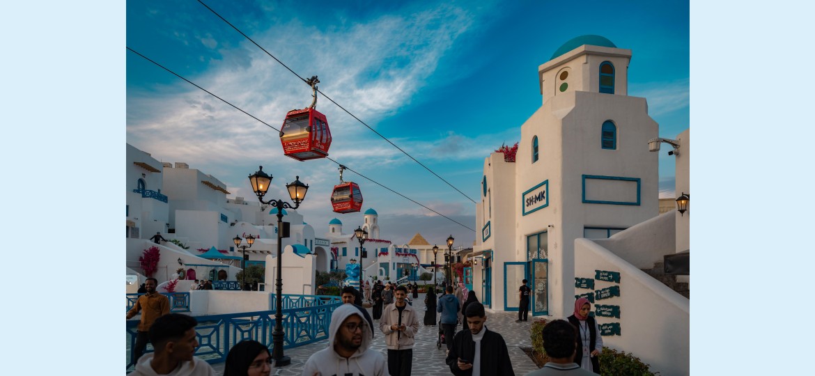 يجوب التلفريك سماء موسم الرياض كحلقة وصل بين بوليفارد وورلد وبوليفارد سيتي، مانحًا ركابه إطلالة ساحرة على العديد من أبرز المعالم السياحية من حول العالم كقوس النصر من العاصمة الفرنسية باريس، وهرم "تشيتشن إيتزا" أحد أكبر معالم حضارة المايا من المكسيك، وأهرامات الجيزة من مصر، والمزيد من معالم الحضارات العريقة من مختلف أقطاب الأرض كالصين وإيطاليا والمغرب والهند وإسبانيا، وأمريكا واليابان واليونان.