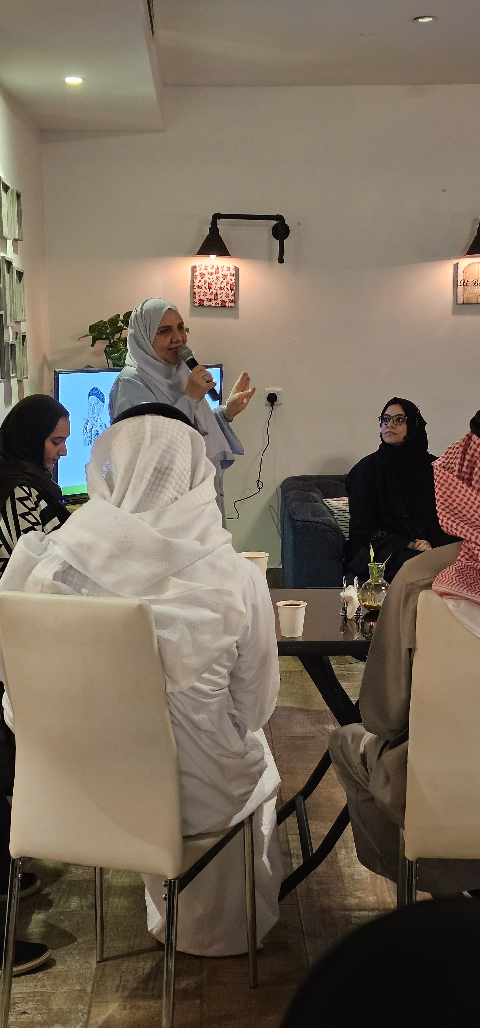 فكانت توطئتها للموضوع رائعة حين وضحت ماذا تعني كلمة أدب؟ وماهي أجناس الأدب وموقع المسرح من الفنون الأخرى فذكرت بأنه هوالأسلوب الجميل في التعبير ولايجيده إلا من إمتلك أدواته من قواعد اللغة وبيان بلاغي ومحسنات بديعية ليكون مثل الرداء الفاخر الجميل وأبحرت وأبدعت في حديثها عن نشأة المسرح في أوروبا وهم لهم الريادة فيه وكيف كان تأثيره على مجتمعاتهم وكيف أنه أحدث تغييراً في أنماط تفكيرهم وأسلوب حياتهم وخصوصا مع بدء عصر النهضة في أوروبا والإنعتاق من حقب التخلف الفكري والإنساني حين كان يطلق عليها بالقرون الوسطى والإنعتاق من سلطة الكنيسة الجاثمة على الفكر وعدم الخروج عن نصوصها المقدسة ومايخالف تعاليم المرجعيات الدينية وكيف طرأ هذا التحول الذي جعل من أدابهم مزدهرةوخصوصا في إنجلترا وهي رائدة الأداب الأوروبية ونشأة الأدب الإنجليزي يعتبرمع المسرح الإليزابثي نسبة للملكة إليزابيث الأولى في فترة حكمها الذي بدء من منتصف القرن السادس عشر للميلاد والذي أخذ طابع التراجيديا حتى أصبح يأخذ شكل من أشكال الكوميديا والأسلوب الساخر وأعطت ملمح عن رواد المسرح المؤثرين ومنهم وليام شكسبير كذلك تطرقت للكاتب والروائي الكبير تشارلز ديكنز والذي كان له تأثير بأسلوبه الوصفي الجميل الساخر حتى أتت على شخصية موضوع محاضرتها وهوالأديب العظيم المصري توفيق الحكيم الكاتب المسرحي والذي يعتبر رائد الأدب المسرحي في الوطن العربي والذي أحدث نقله أدبية غير مسبوقة في هذا الفن والذي يعتبرابو الفنون كما يطلق عليه حين ذكرت بأن توفيق الحكيم أوجد ميزة في الكتابة المسرحية فجعل من المسرح ذهني أوإفتراضي اكثر منه تقليدي وهذه الميزة لم يسبقه أحد كما تحدثت عن إبداعة فيالكتابة المسرحية والتي تعتبر أشهر مسرحيه له وهي "أهل الكهف" المقتبسة من النصوص القرأنية وفي الحقيقة هذه المحاضرة بارعة في أسلوبها وفي تغطيتها لكل جوانب المواضيع التي تتطرق إليها نظيرما تمتلكه من ثقافة عالية وإطلاع عميق على الأداب العالمية وخصوصا الأدب الإنجليزي لأنها هي في الأساس تخصصها وشدت الحضور بأسلوبها خلافاً لكونها روائية وبعد أن أنهت محاضرتها فتحت المجال للحضور للمداخلات فكانت الأسئلة تتمحور حول الأدب المسرحي وعن شخصيته المحورية توفيق الحكيم وكانت الأستاذة ريهام كريمة مع الحضور حيث قامت بإهدائهم أحد إصدارتها الجديدة "الخلاط"وفي الختام لابد أن نشيربأن الدكتوره هيفاء فقيه المشرفة على نشاط المقهى الثقافي بذلت جهود حثيثة للإرتقاء بالأمسيات المقامة بمقهى روشن حيث عقدت شراكة مجتمعية مع فريق منتدى تدفق الثقافي والذين اشرفوعلى التنظيم والترتيب والإعداد للأمسية بشكل جميل لافت وكان ادائهم مميز وراقي وفي الختام قدمت الدكتوره هيفاء شهادة شكر وتقدير للضيفة وسط حفاوة وتصفيق من الحضور والدكتورة هيفاء تحرص على أن يكون النشاط الثقافي يخدم المجتمع المكي وفق توجهات ورؤية الشريك الأدبي وتتطلع للمنافسة على المراكز المتقدمة ليس على مستوى مكه بل على مستوى المملكة وهي تمضي به إلى الأمام وهي الأكاديمية المثقفة الحصيفة والتي تتطلع بدورها ومسئوليتها المجتمعية بوعي إتجاه مجتمعها في أهمية حركة التنوير للمجتمعات ومن أبرز الحضور التي إكتضت بهم قاعة المقهىهم البروفسورعبدالله بن إبراهيم الزهراني استاذ البلاغة والنقد بكلية اللغة العربية وآدابها بجامعة أم القرى البروفسورعبدالمجيد الطيب عمر أستاذ اللغة الإنجليزية بجامعة أم القرى سابقا والفنان التشكيلي الشاعر أحمد القحطاني والمسرحي محمد صدقه والمشتغل بالتراث حسن علي عايد ومن سيدات المجتمع المكي السيده سميره محمد علي مهدي والشاعرة الناشطة الإجتماعية الأستاذة حنان فلمبان والأستاذة إيمان الشريف والمحامية الأستاذة إبتسام الزهراني كذلك الأستاذة رواء رامي مرقوشي
