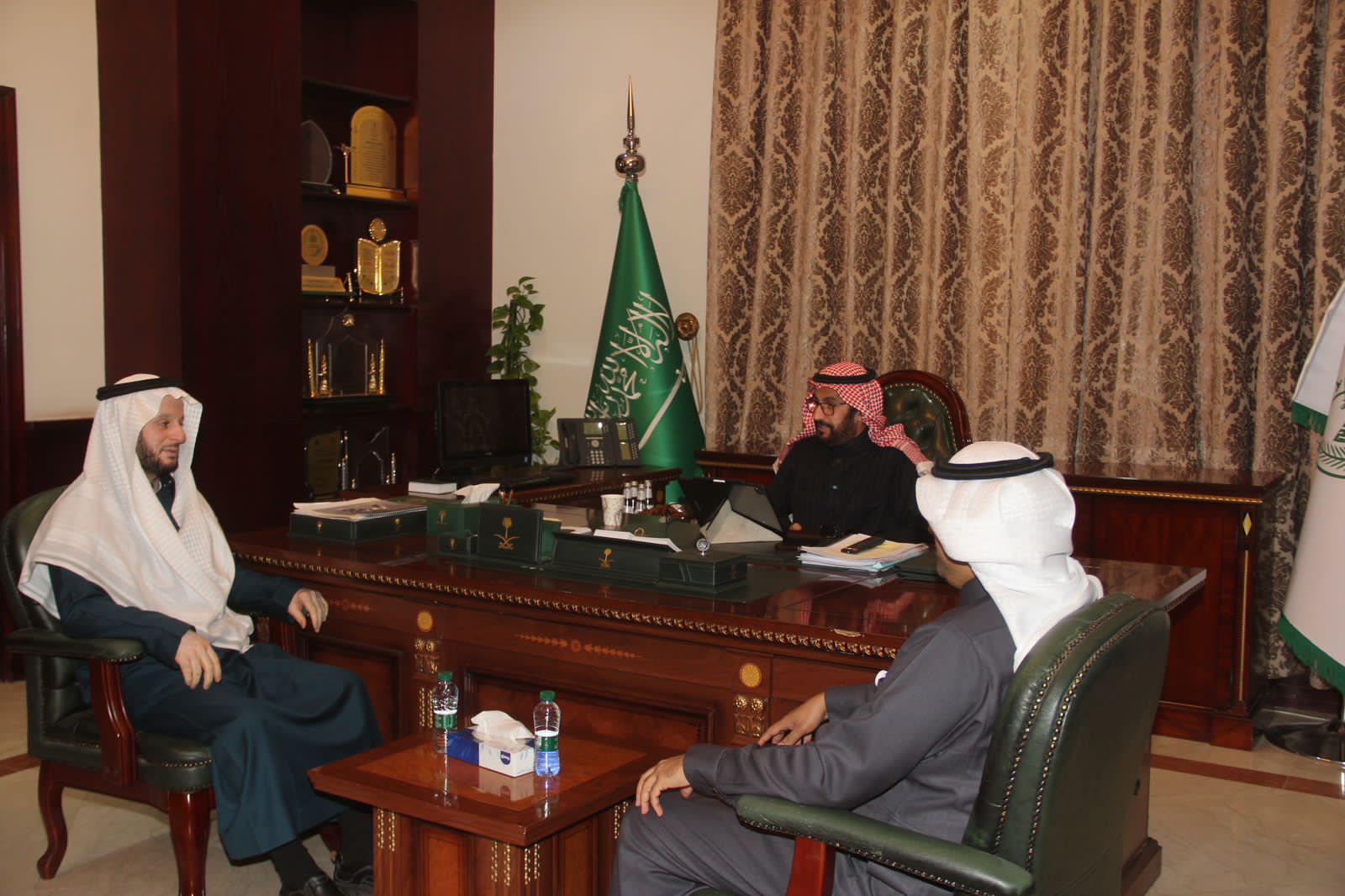 إلتقى سعادة محافظ القريات عبدالله بن صالح الجاسر صباح اليوم الثلاثاء الموافق 1445/7/25هـ بمكتبة رئيس القطاع الشمالي بشركة المياه الوطنية عبد المحسن محمد الفريح و مدير عام وحدة أعمال المياه بمنطقة الجوف المهندس حسن بن قبلان القرني ومدير فرع وحدة أعمال المياه بمحافظة القريات عبد العزيز السمحان الشراري .