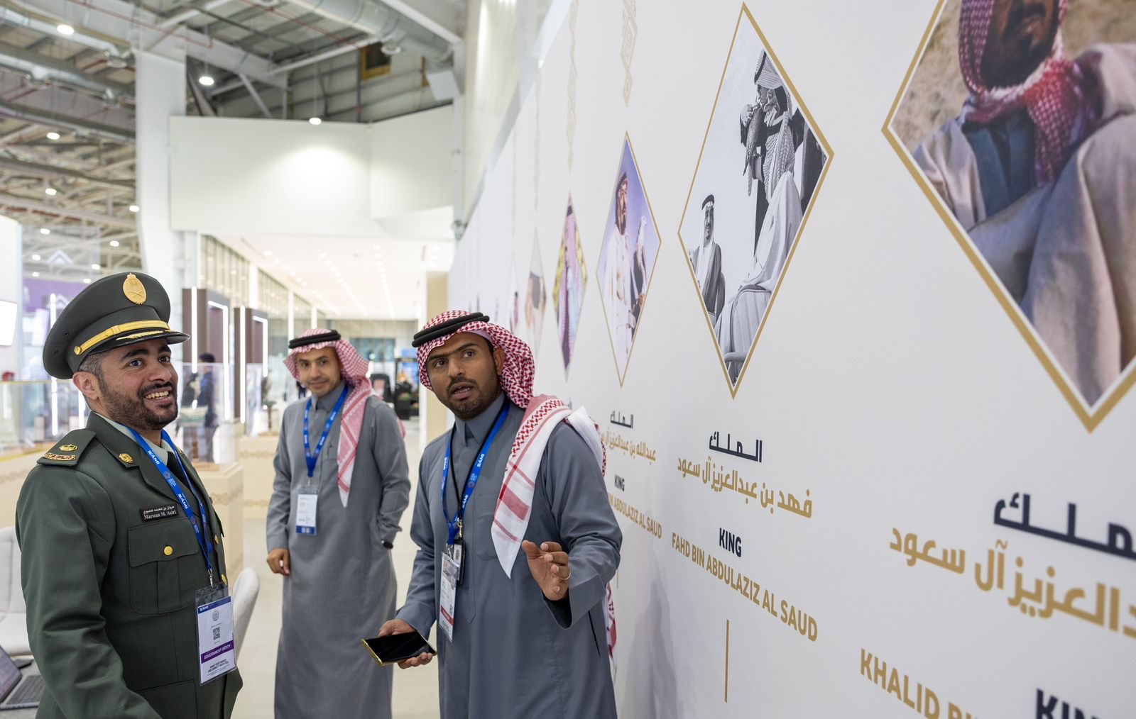 جذبت صور ملوك المملكة برفقة الصقور، زوار جناح نادي الصقور السعودي في معرض الدفاع العالمي 2024 في نسخته الثانية؛ الذي يقام في الفترة من 4 إلى 8 فبراير الجاري، بتنظيم الهيئة العامة للصناعات العسكرية.