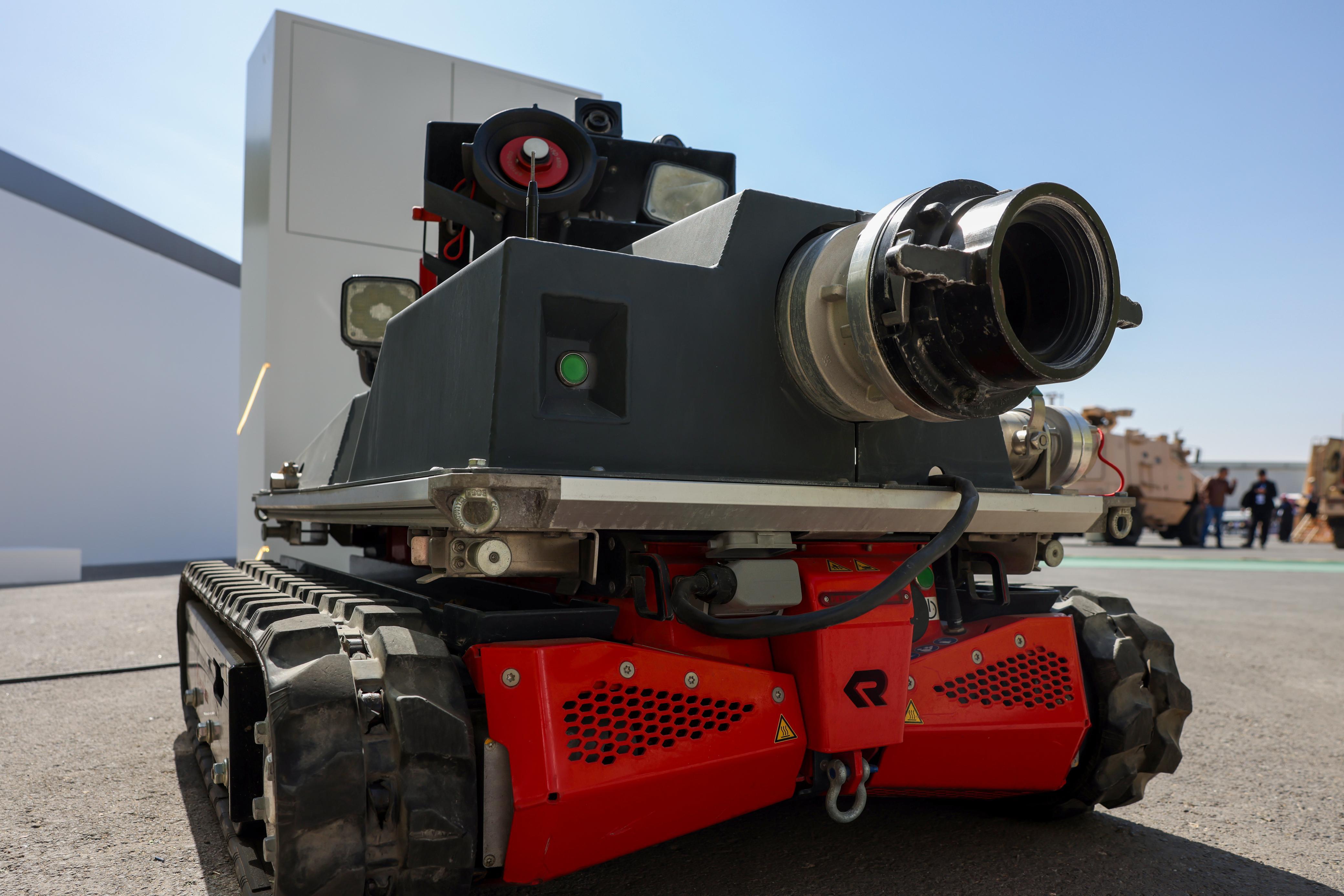 وحظي زوار جناح وزارة الداخلية في المعرض، بالتعرف على الروبورت المزود بـ (3) فتحات لمخارج المياه والرغوة، وكاميرات حرارية، وآلية عمله في عمليات الإطفاء التي يصعب الوصول إليها في المواقع ذات الخطورة العالية والمناطق التي لا يمكن الاقتراب منها، والمهام ذات الجهد العالي.