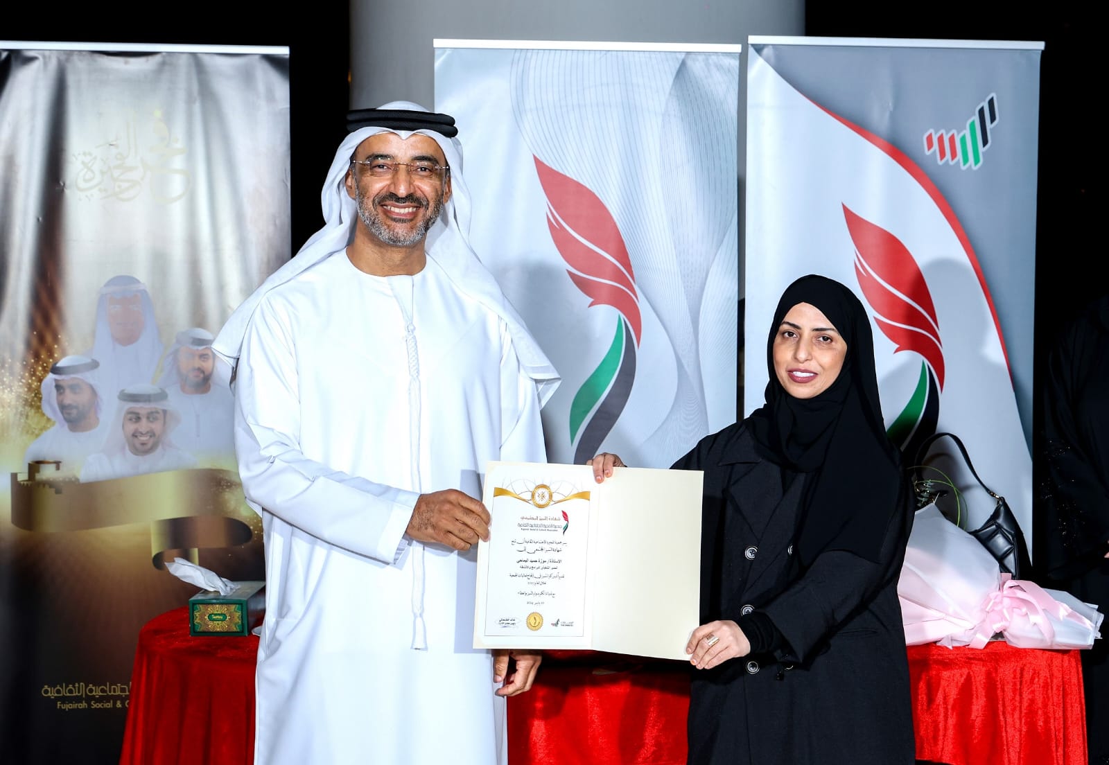 كرمت جمعية الفجيرة الاجتماعية الثقافية، 57 عضواً من أعضائها المتميزين، تقديراً لجهودهم وإسهاماتهم في تعزيز روح التميز والعطاء اللذين تتميز بهما الجمعية وقدرتها على تحقيق الإنجازات المُشرفة، وتقديم نفسها كمنبر ثقافي واجتماعي مهم على الساحة المحلية والعربية والدولية.