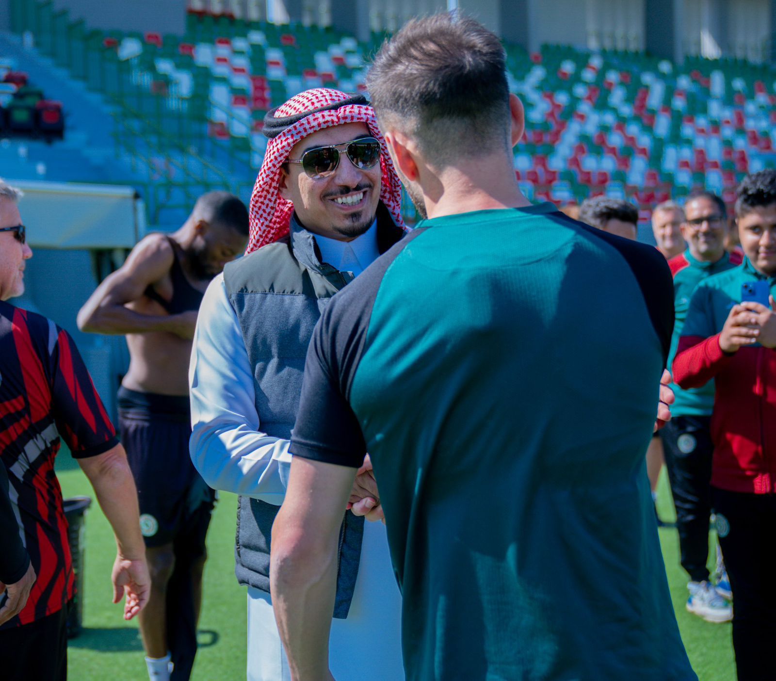 وكان التدريب بقيادة المدير الفني الإنجليزي قد شهد حضور رئيس النادي الأستاذ سامر المسحل ونائبه الكابتن عمر باخشوين وعضو مجلس الإدارة الأستاذ معتز العريني إلى جانب حضور رئيس لجنة كرة القدم الأستاذ حاتم المسحل، وذلك للالتقاء باللاعبين وتحفيزهم ، والوقوف على استعدادات فارس الدهناء الأخيرة قبل استئناف منافسات دوري روشن.