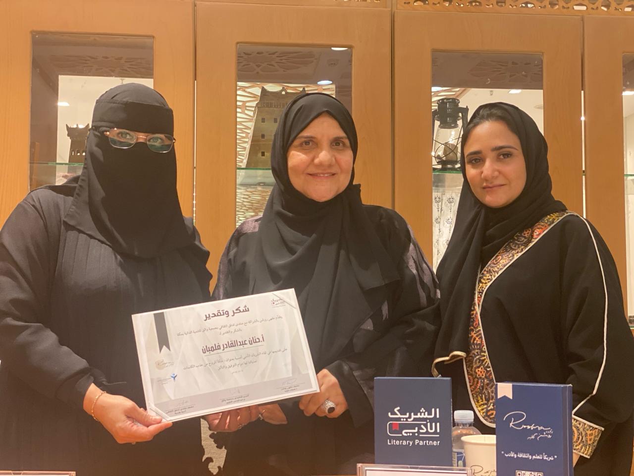 كما أنه أثنى على منتدى الدكتوره هيفاء الثقافي مع هذا الحراك الثقافي مع الشريك الأدبي ودورها في هذا الحراك وحسن إستقبالها وكرم أخلاقها كذلك في حٌسن إختيارها للضيوف فأهداها أبيات من الشعر من درر شعره حين قال: