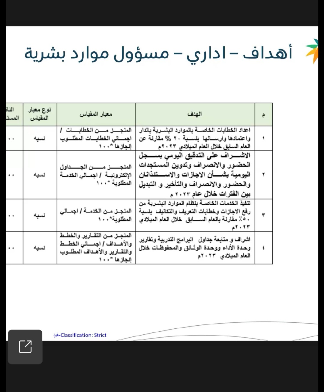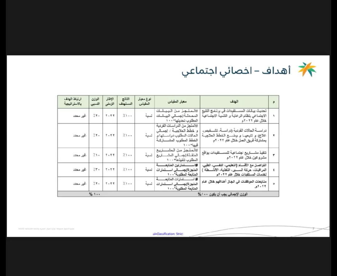 وكانت أهم محاور الورشة هو معرفة طريقة ومعيار تحقيق الأهداف وفهم مؤشرات الأداء والوزن النسبي والناتج المستهدف وطريقة صياغة الأهداف الذكية وأهم شروط الأهداف ،