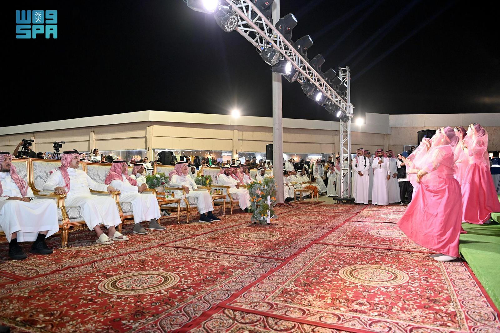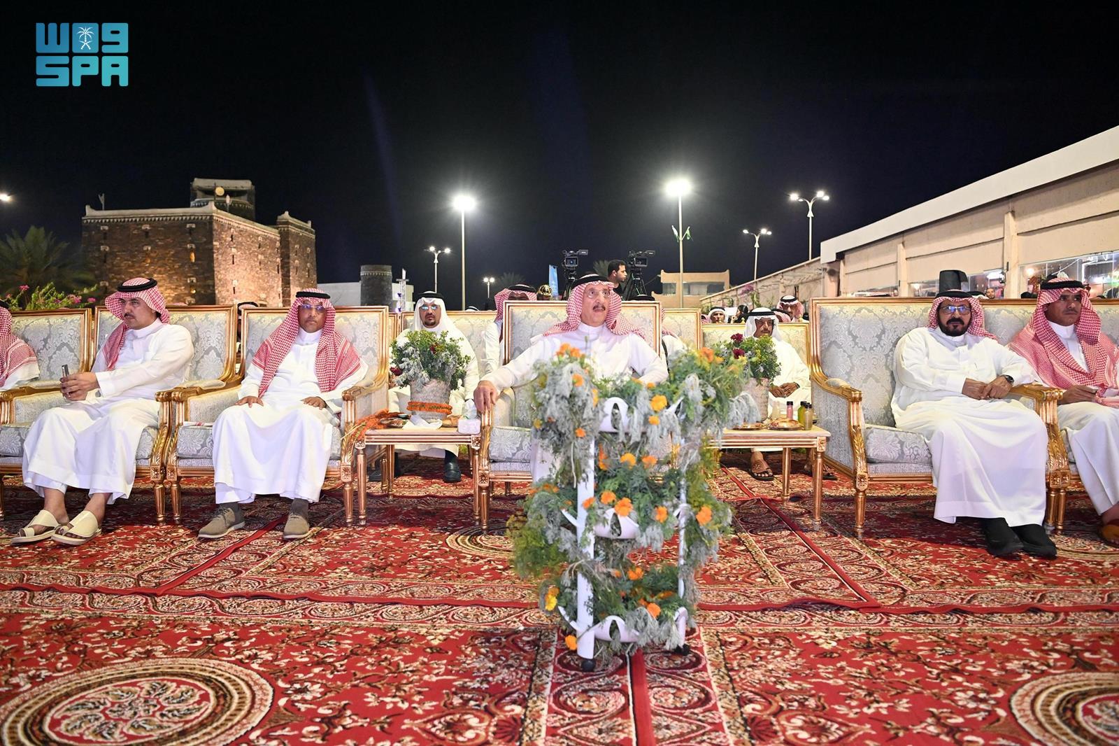 كما تابع سمو أمير المنطقة والحضور ، ألوانًا من الموروثات الشعبية التي شملت قصائد شعرية وفنوناً شعبية من السيف والمعشى والزامل والعزاوي، بمصاحبة الرقصات الأدائية والعرض الفني " موكب شروق " .