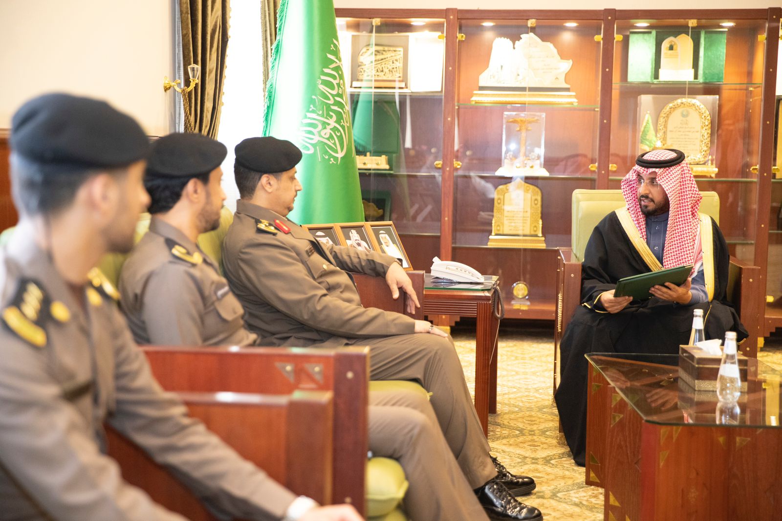 استقبل صاحب السمو الملكي الأمير فهد بن محمد بن سعد بن عبدالعزيز في مكتبه بديوان المحافظة اليوم الثلاثاء الموافق١٤٤٥/٠٨/١٠هـ مدير العيادات الشاملة التخصصية لقوى الأمن بالمحافظة العميد الصيدلي محمد بن صالح الشمراني يرافقة عدد من منسوبي العيادات.